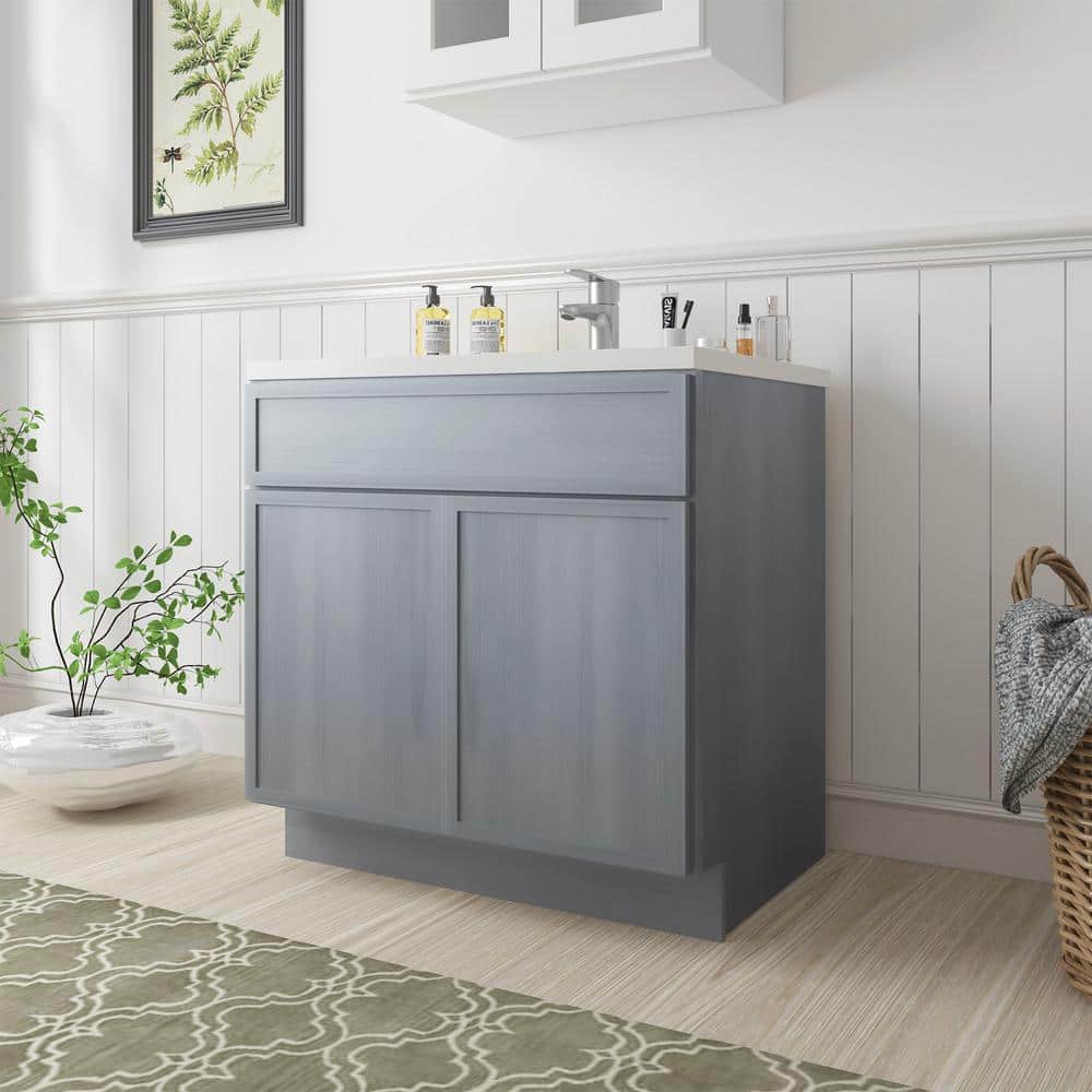 Elevate your bathroom with the Vanity Art 36-inch bath vanity cabinet in sophisticated Smoky Gray, featuring a timeless shaker-style design. Built from high-quality birch and plywood, this cabinet is engineered for durability and ample storage space, making it a practical yet stylish choice for modern decor.