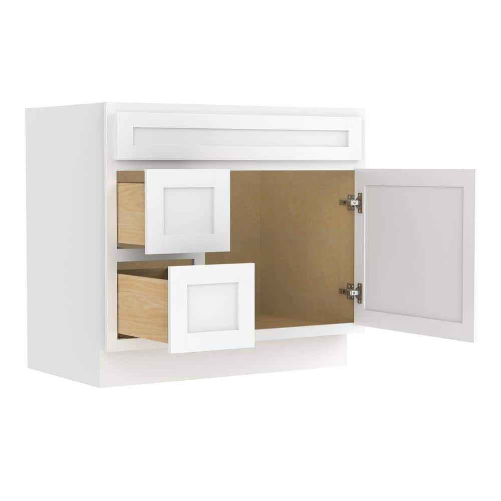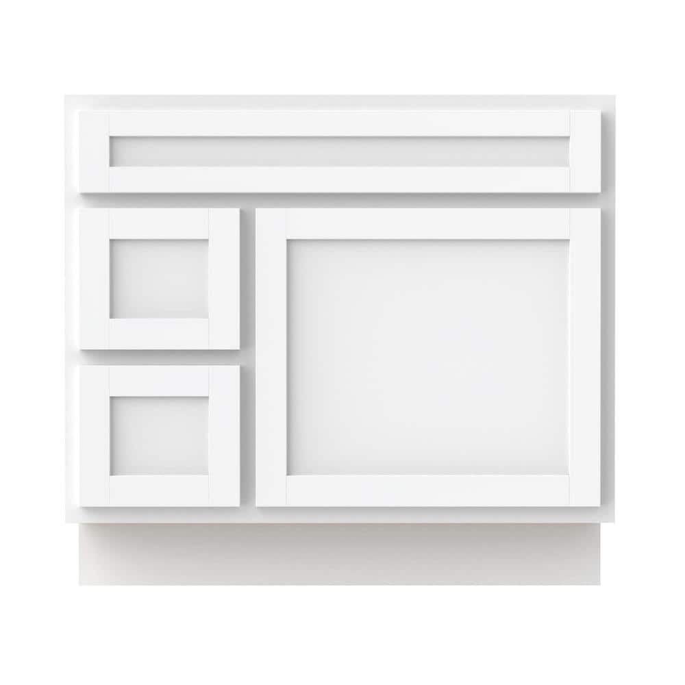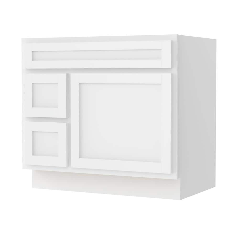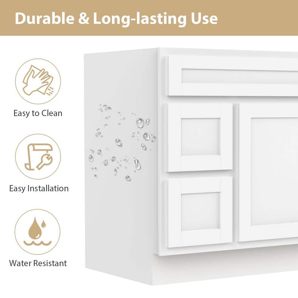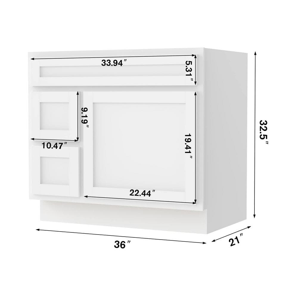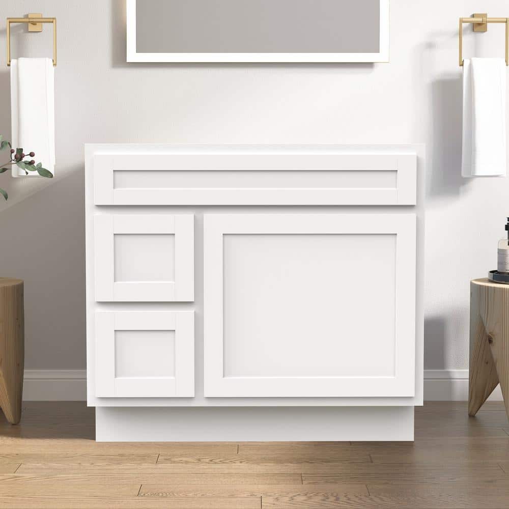 The Vanity Art 36" Bath Vanity Cabinet is designed to blend timeless elegance with practical storage solutions. Featuring a durable birchwood construction and a sophisticated white finish, this piece provides both style and longevity. Ideal for modern and transitional design schemes, it combines form and function with soft-closing mechanisms for ease of access.
