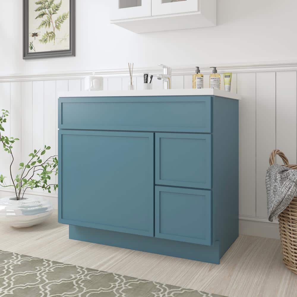 Upgrade your bathroom with the Vanity Art Bath Vanity Cabinet in stunning Sea Green. Crafted from high-quality birch and plywood, this cabinet ensures durability while offering ample storage with its two right-side drawers. Its elegant shaker-style design and soft-closing mechanisms add a touch of sophistication to any space.