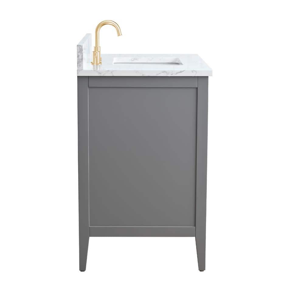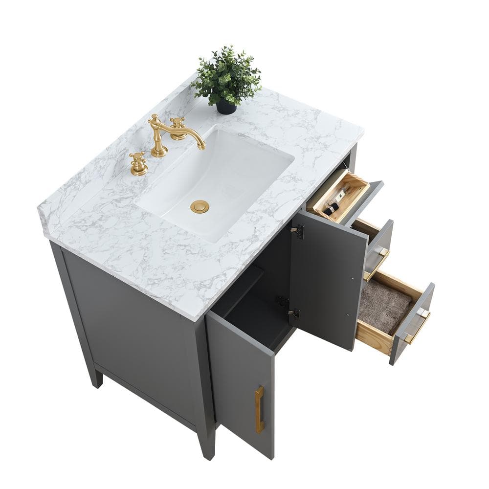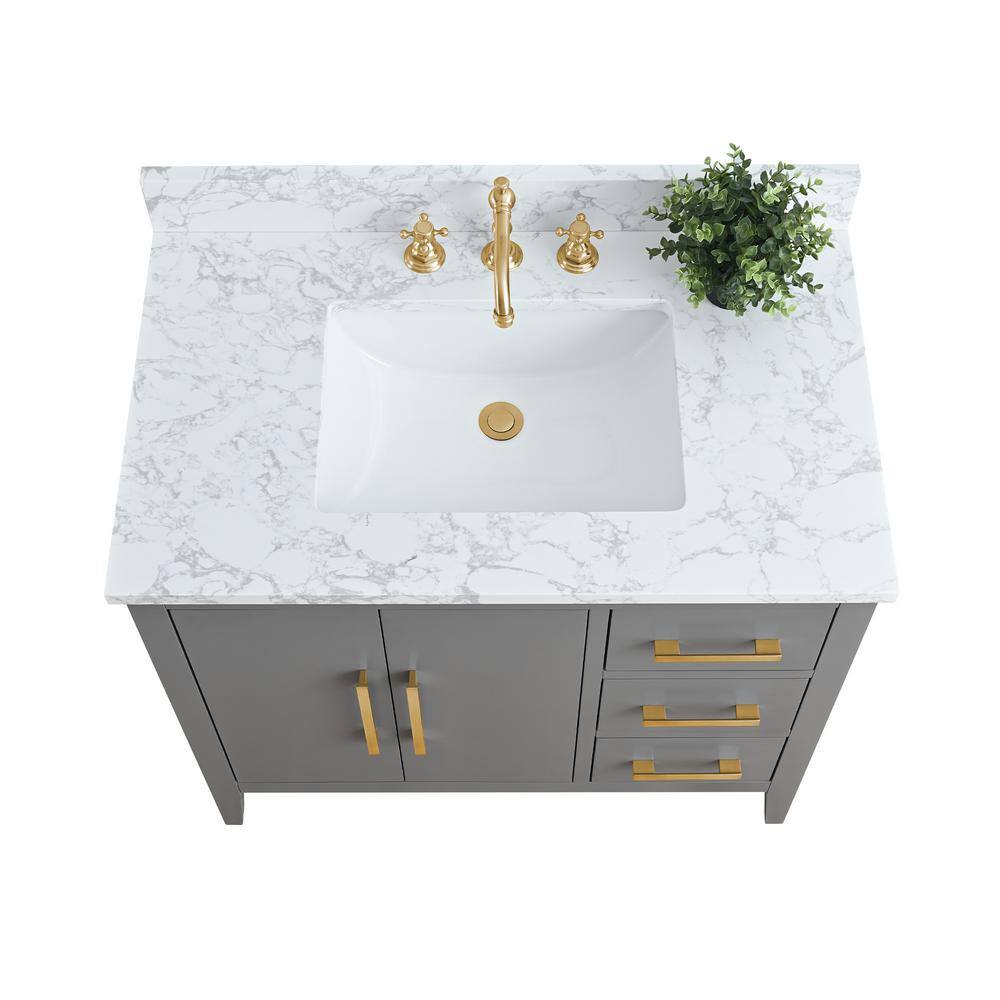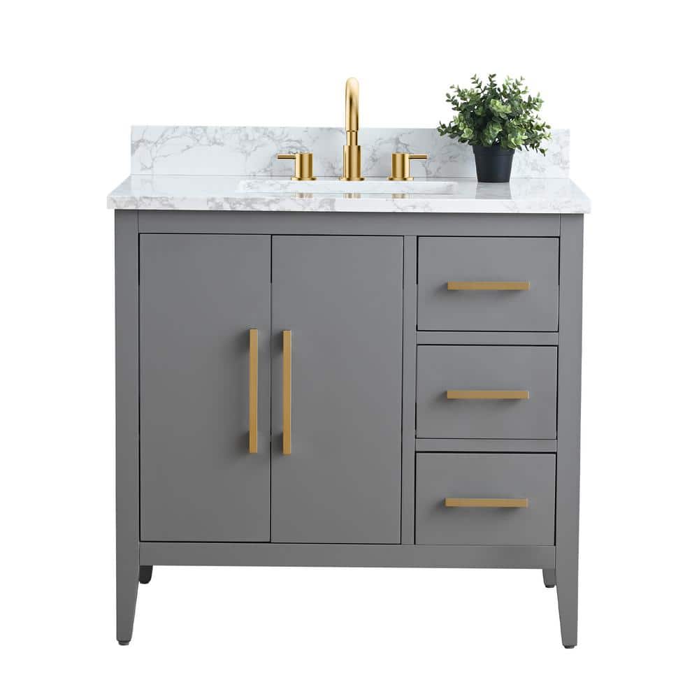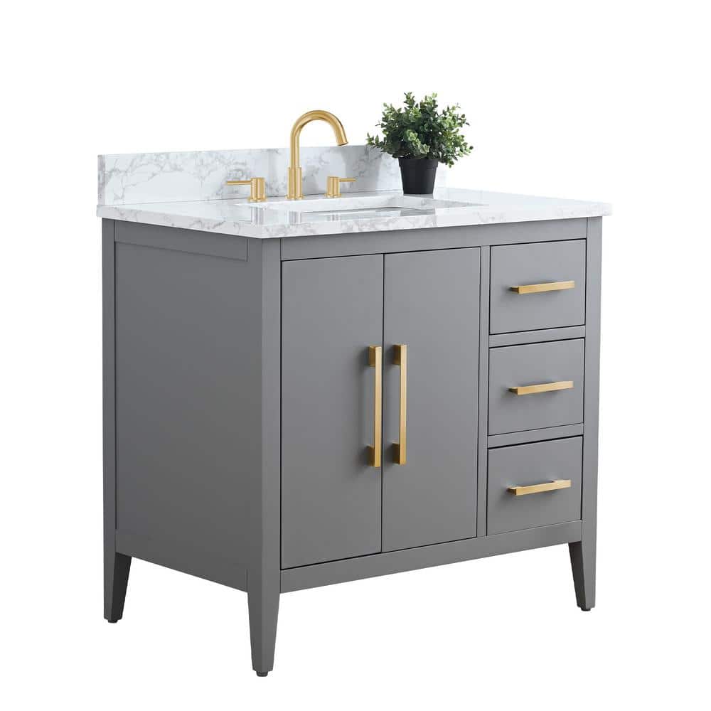 Transform your bathroom with the Vanity Art 36" Single Sink Bathroom Vanity in Cashmere Gray, featuring a luxurious engineered marble top. Its refined design, with a ceramic undermount sink and sophisticated gold hardware, offers both elegance and ample storage space for a more organized space.