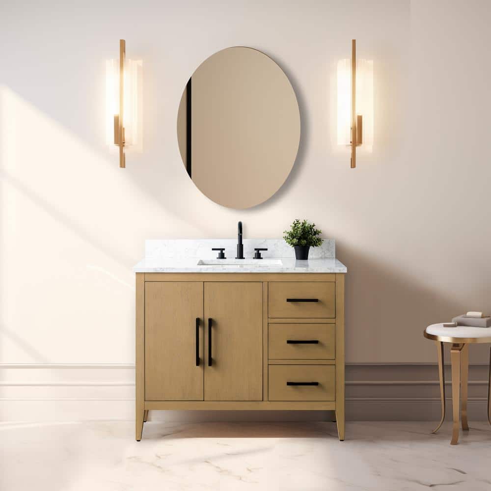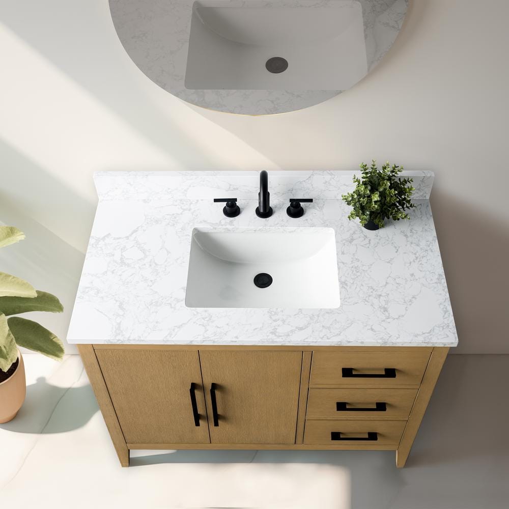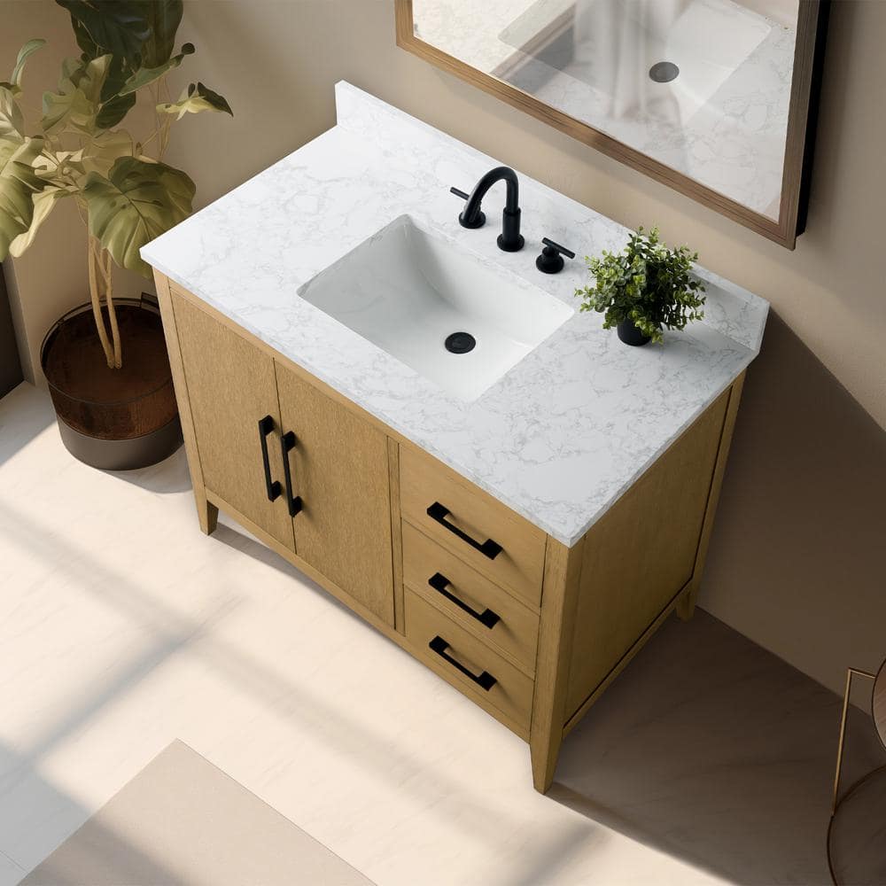 Vanity Art 42 in. W x 22 in. D x 34 in. H Single-Sink Bathroom Vanity in Natural Oak with Engineered Marble Top in Arabescato White