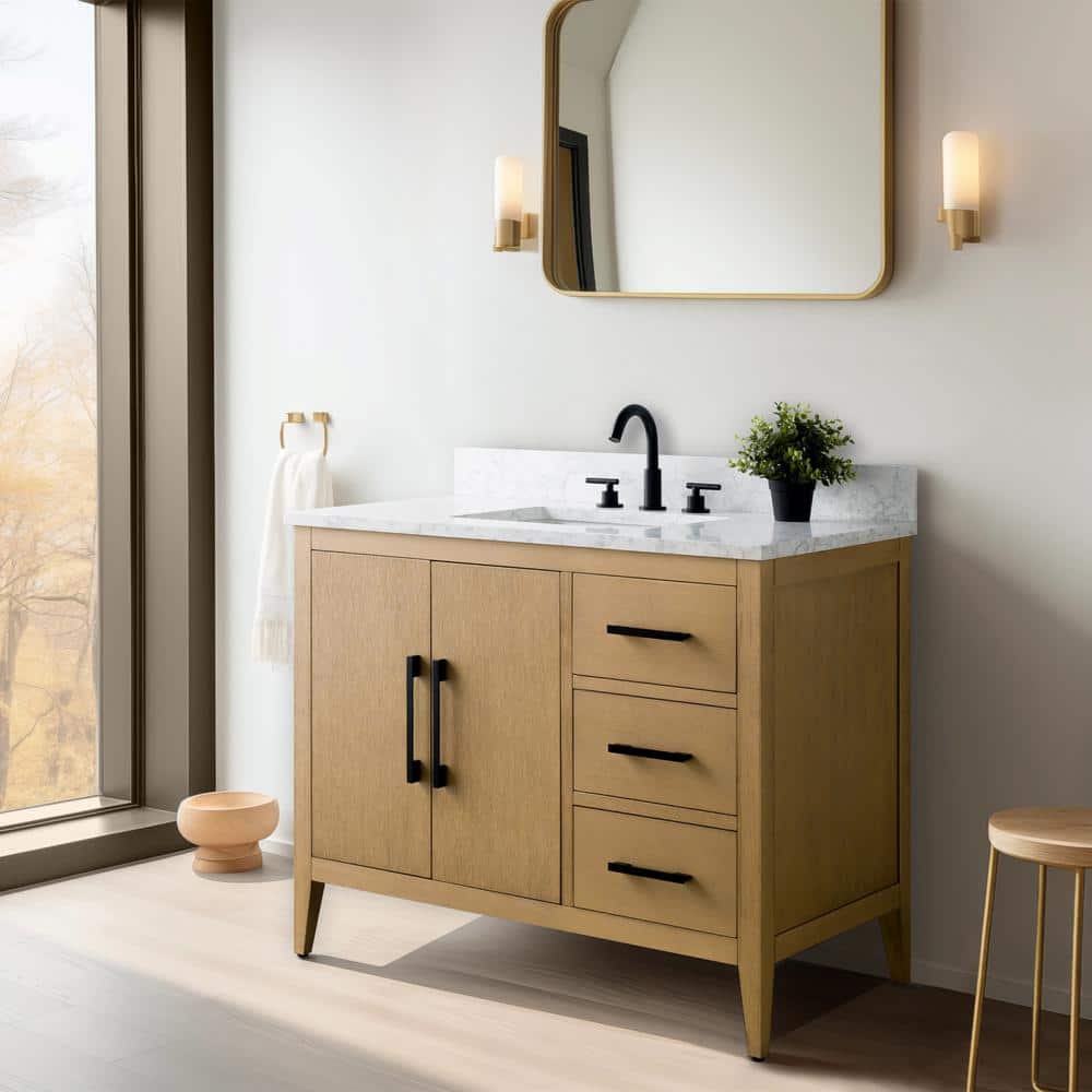 Natural Oak 42-Inch Single Sink Bathroom Vanity