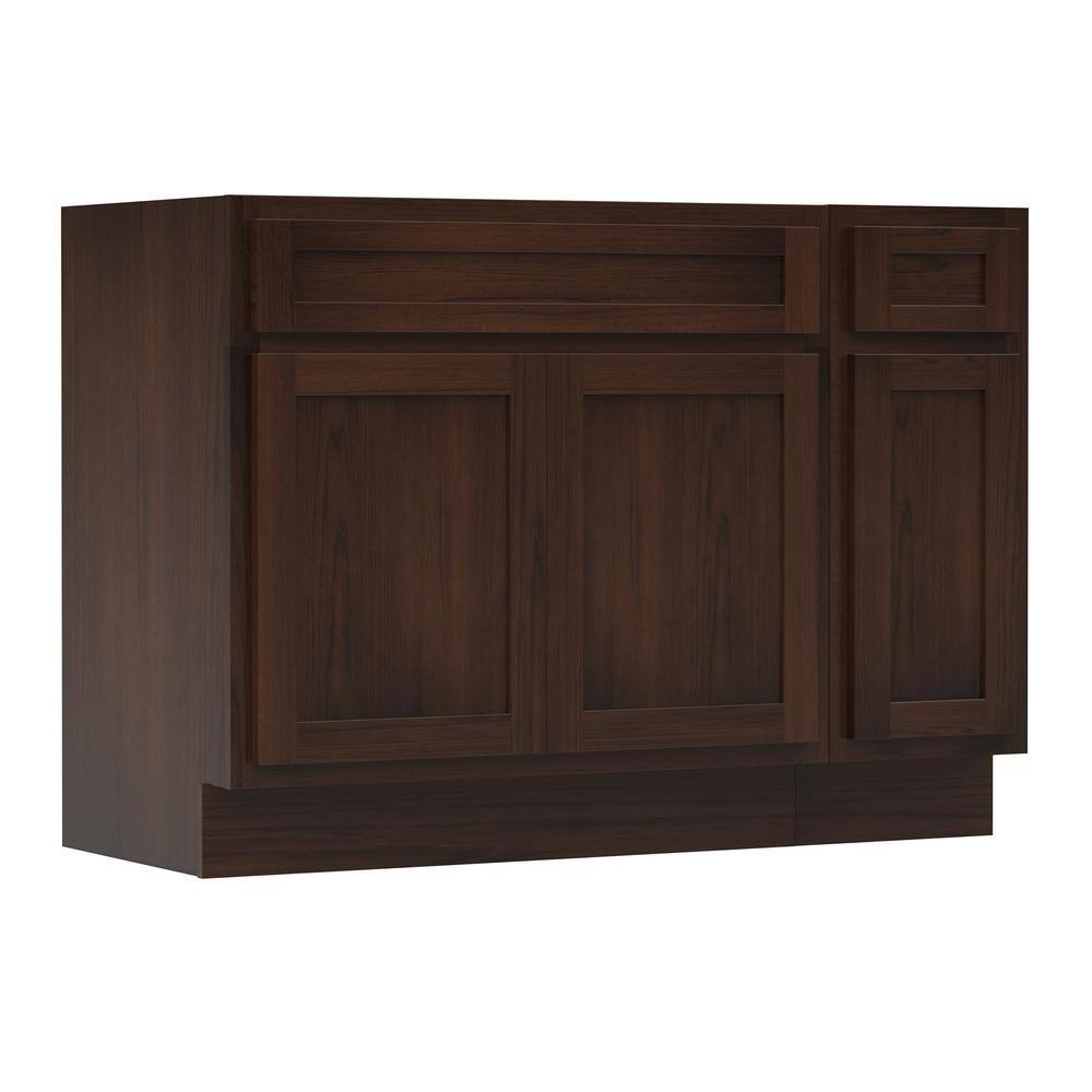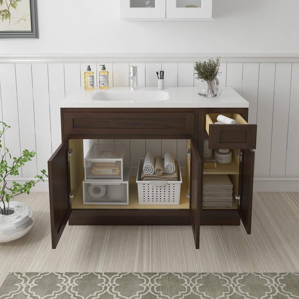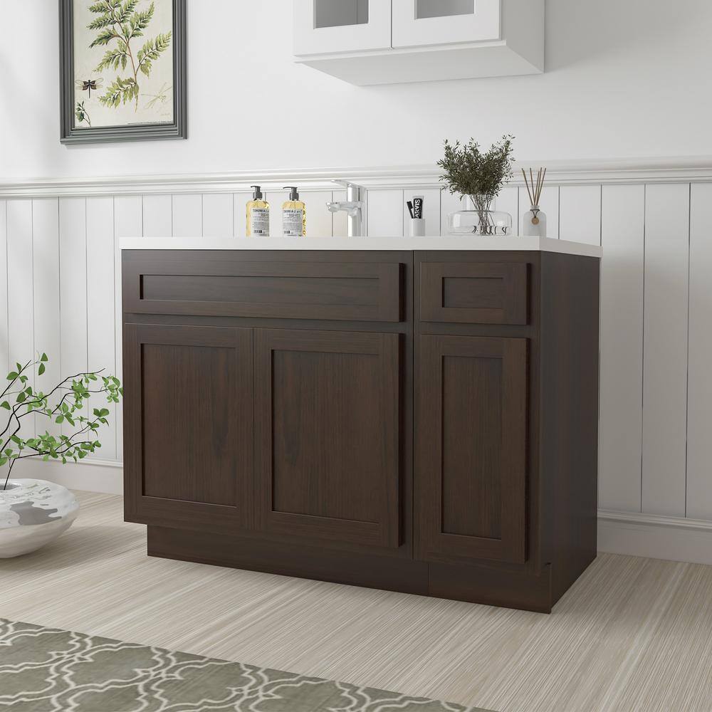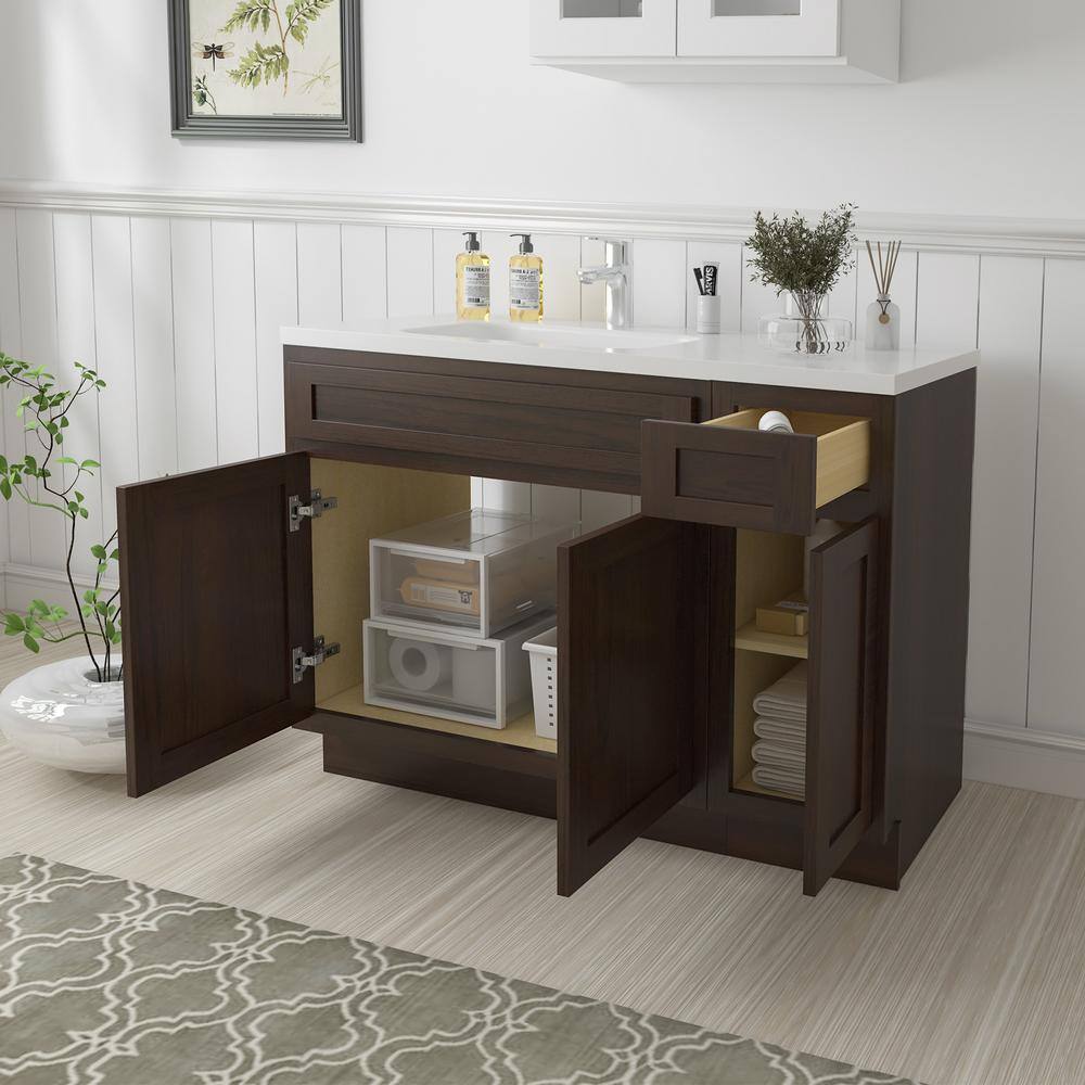 Streamline your bathroom storage with the Vanity Art 48" Bath Vanity Cabinet in a warm, elegant brown finish. Constructed from durable oak and plywood, this cabinet combines timeless style with practical functionality to enhance any bathroom decor.