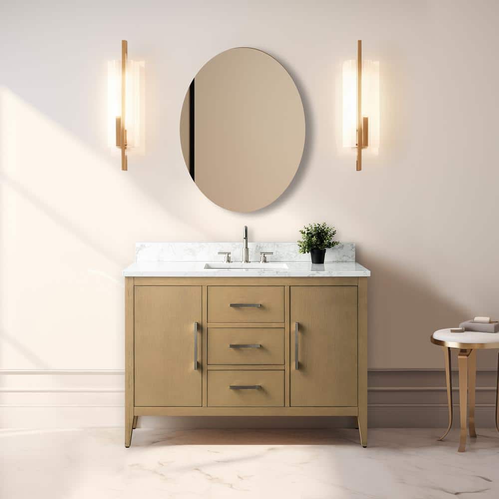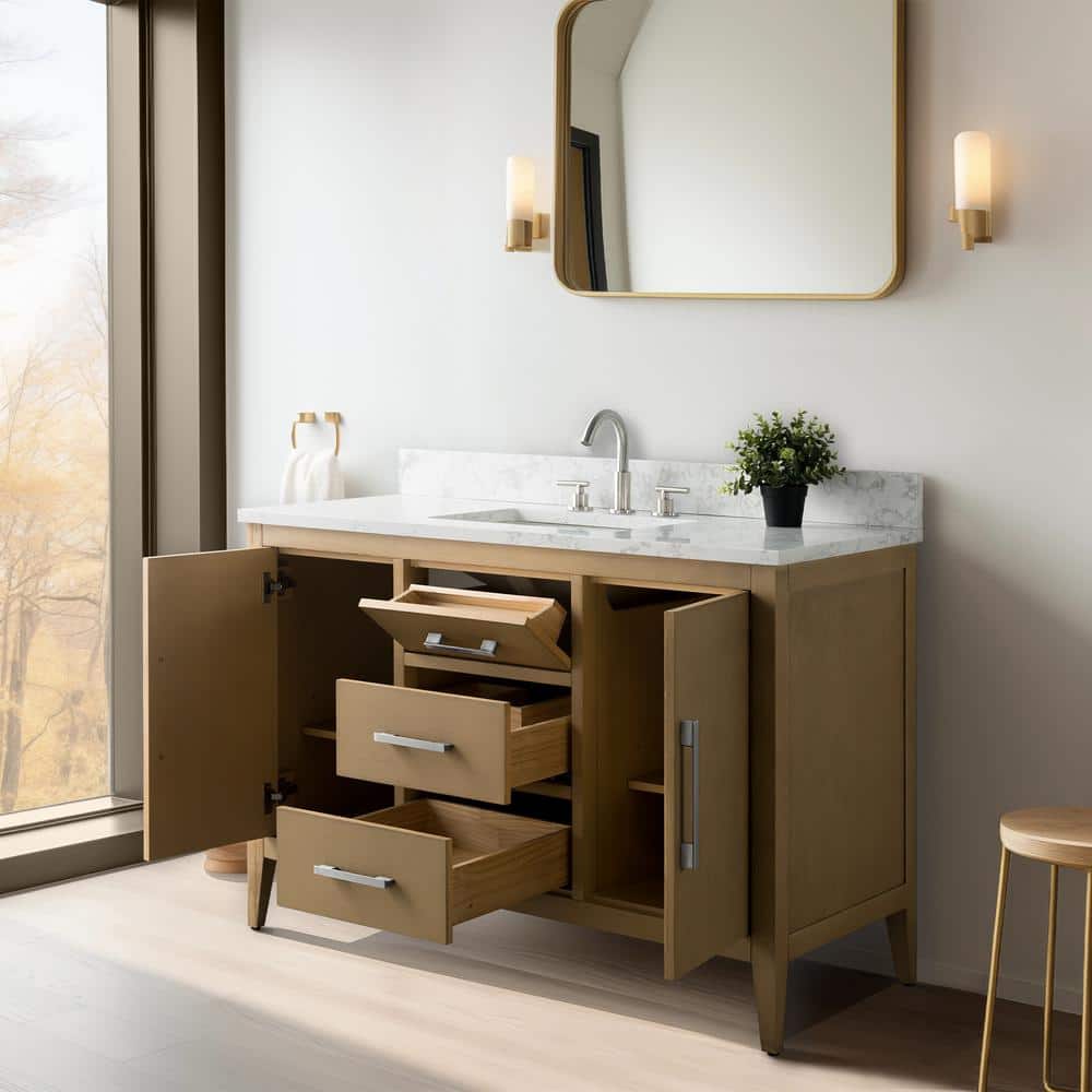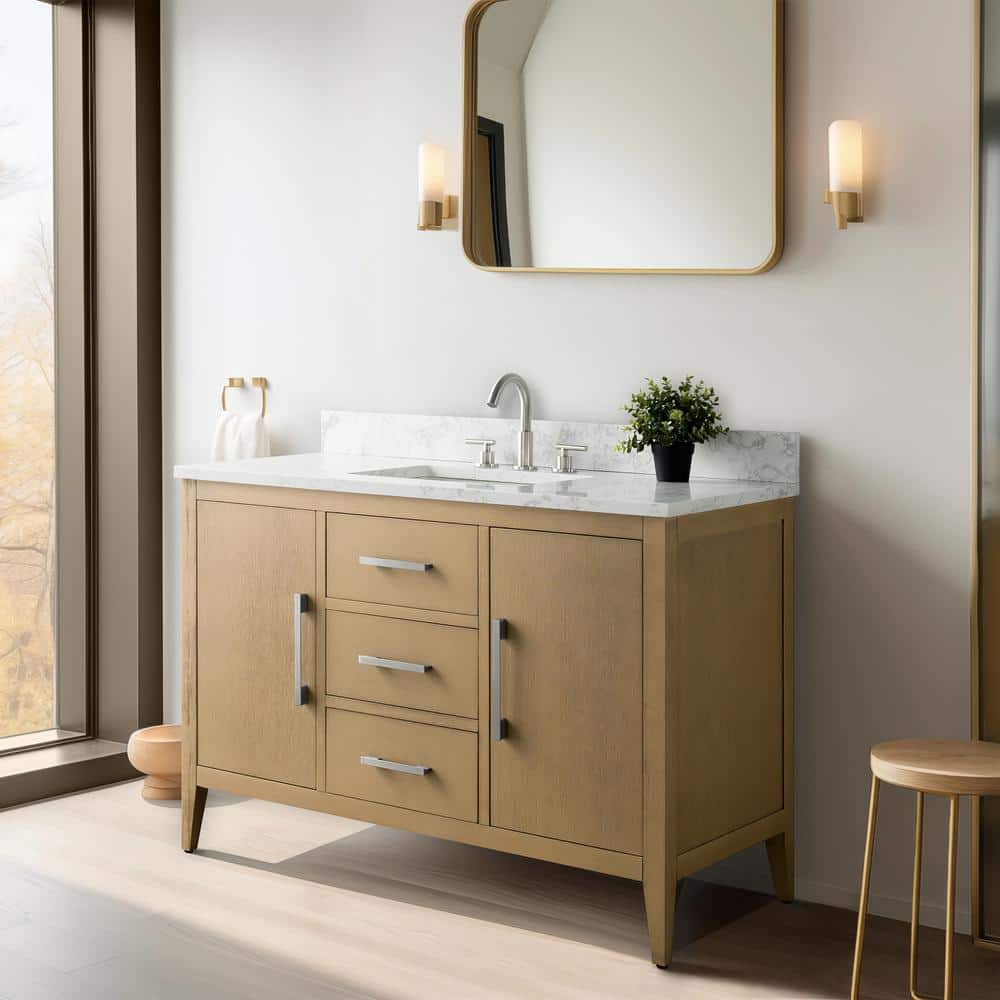 48-inch Natural Oak Bathroom Vanity with Marble Top