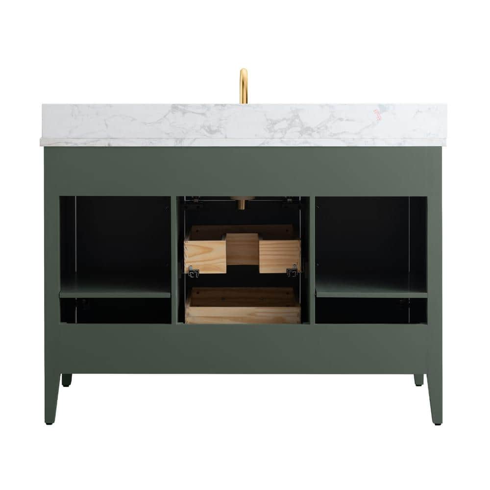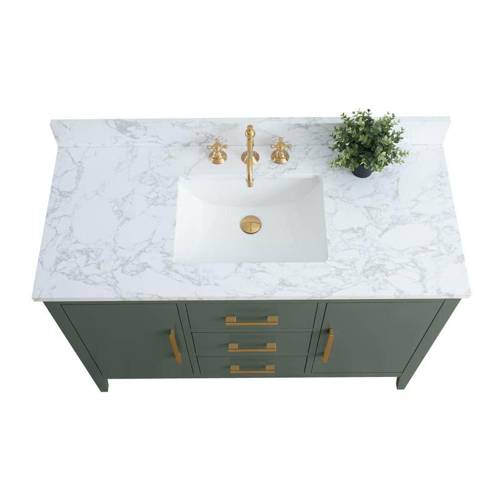 Vanity Art 48 in. W x 22 in. D x 34 in. H Single Sink Bathroom Vanity Cabinet in Vintage Green with Engineered Marble Top