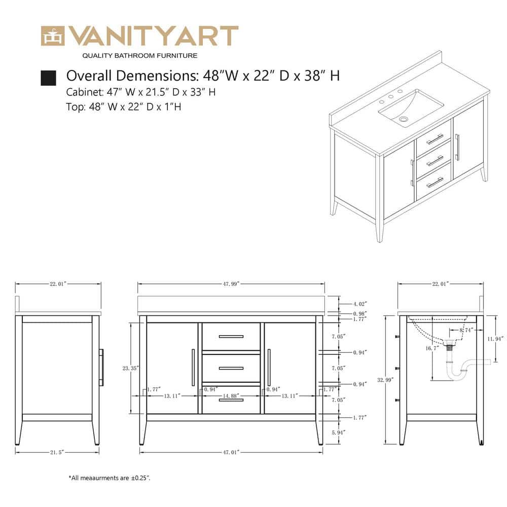 • Free Standing: Move or place the vanity without restrictions.