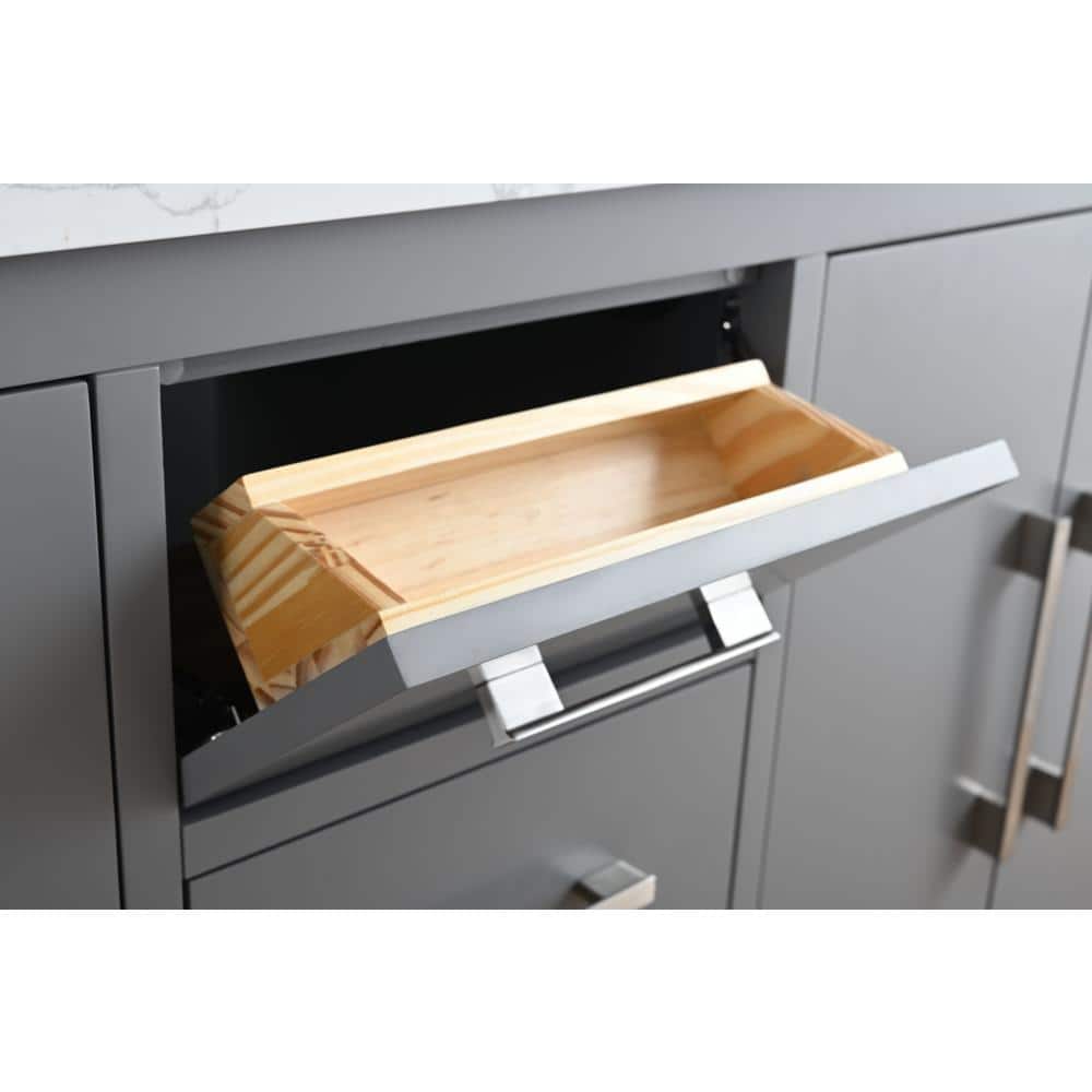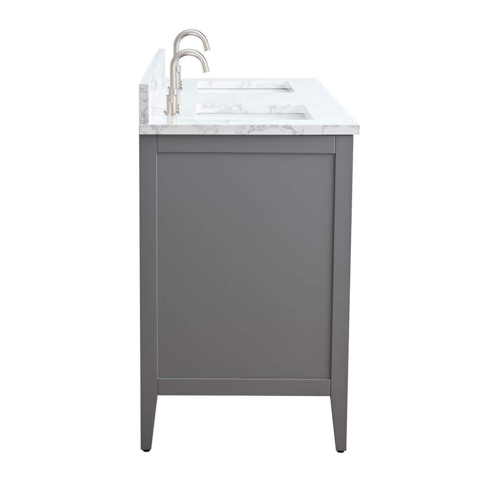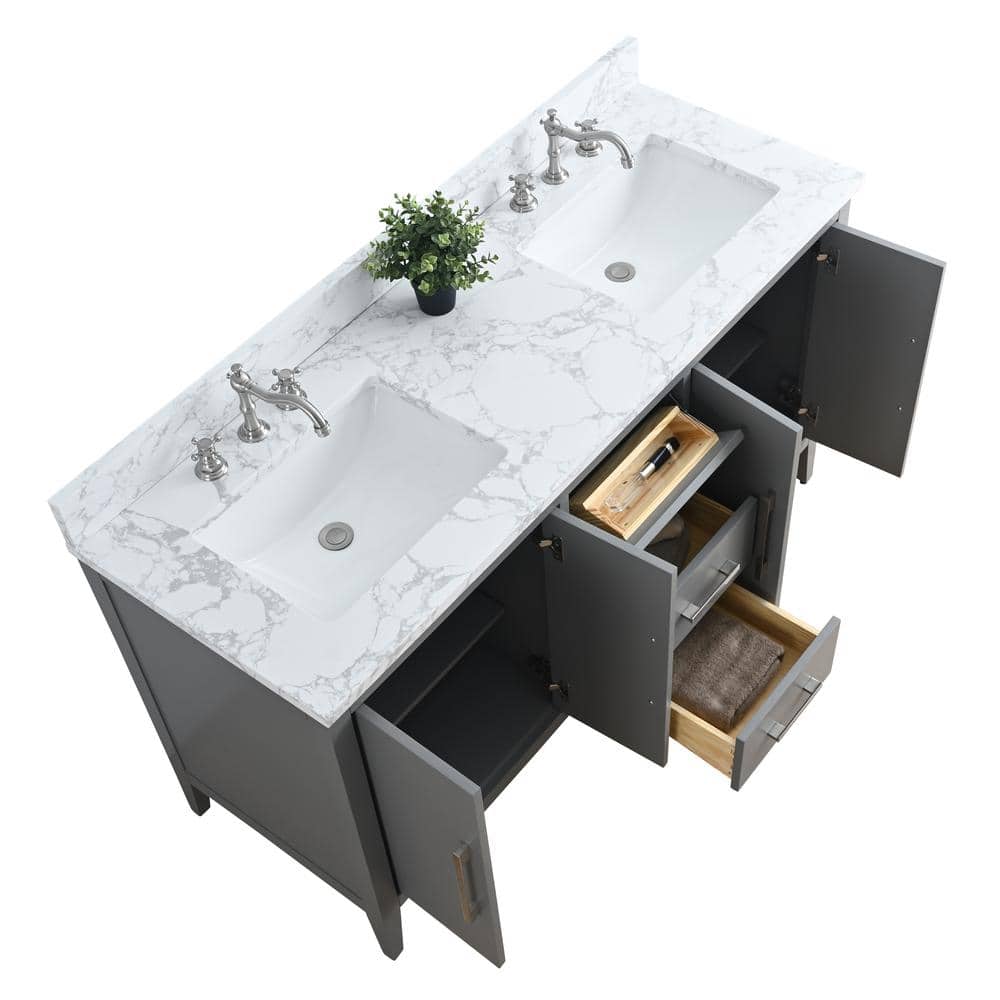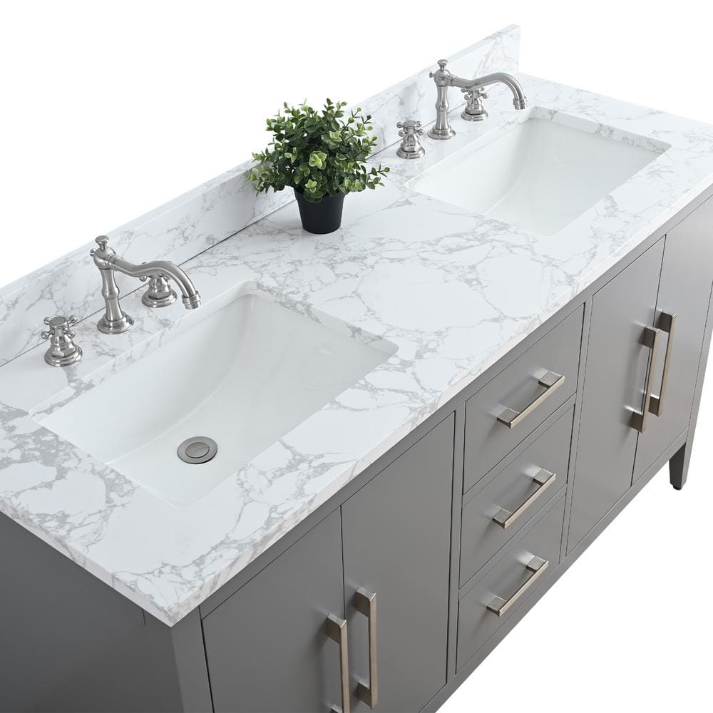Vanity Art 60 in. W x 22 in. D x 34 in. H Double Sink Bathroom Vanity Cabinet in Cashmere Gray with Engineered Marble Top in White
