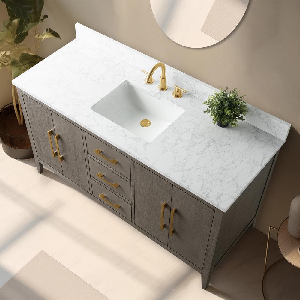 60" Driftwood Gray Bathroom Vanity with Marble Top