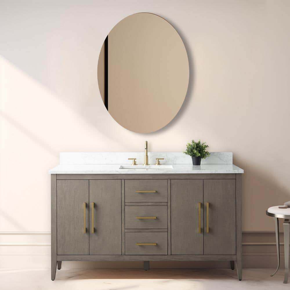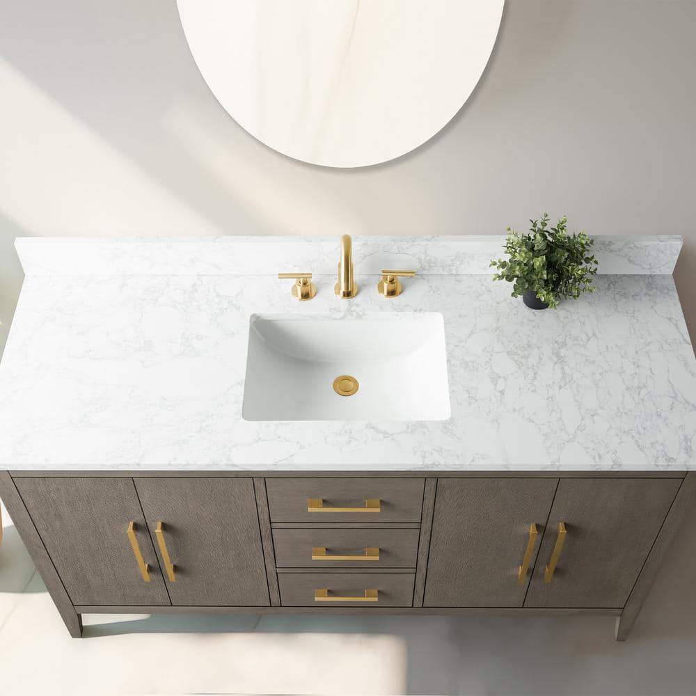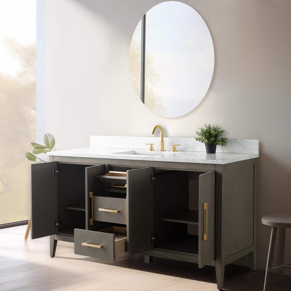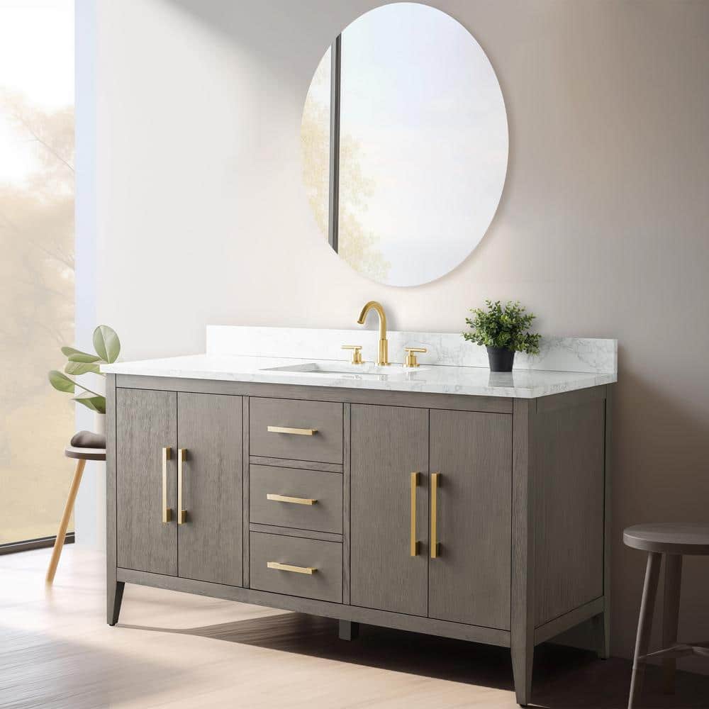 Elevate your bathroom with the Vanity Art 60" Single-Sink Bath Vanity, featuring a Driftwood Gray finish and a luxurious Arabescato White engineered marble top. This vanity combines modern elegance with practical functionality, offering ample storage and a chic design that's perfect for any contemporary home.