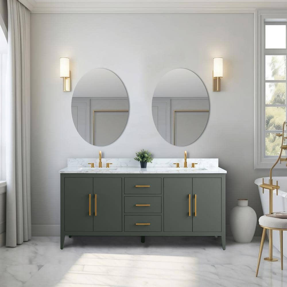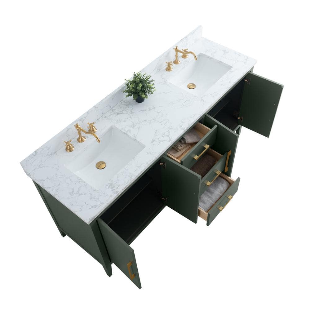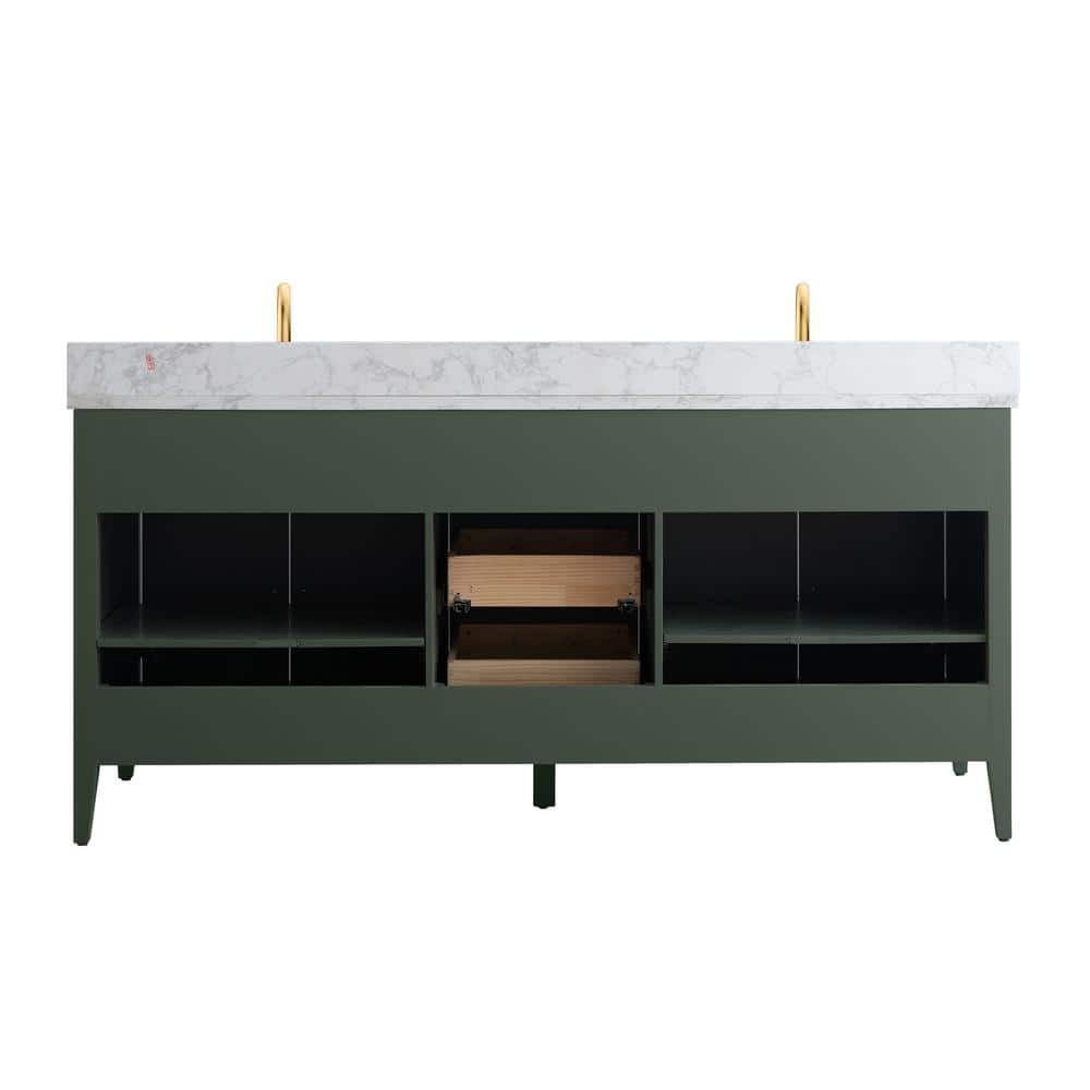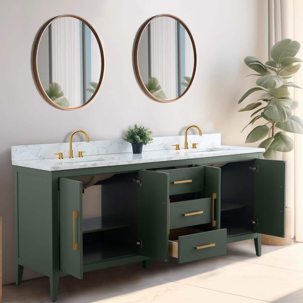Elevate your bathroom with the Vanity Art Double Sink Bathroom Vanity in Vintage Green. Featuring a sophisticated engineered marble top, this freestanding vanity offers ample storage and a refined aesthetic, perfect for professional spaces and stylish homes alike.