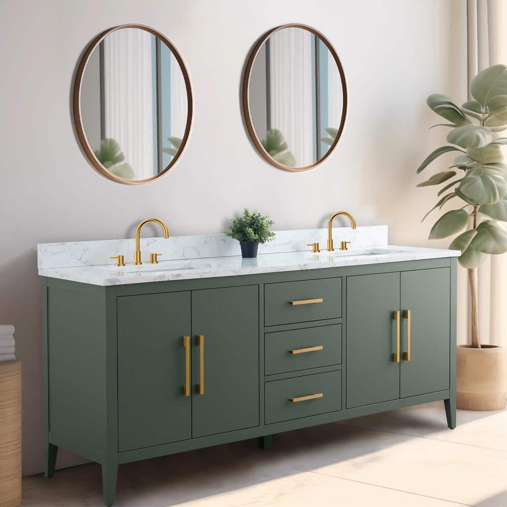 Transform your bathroom with elegant functionality—explore the Vintage Green Double Sink Vanity today!