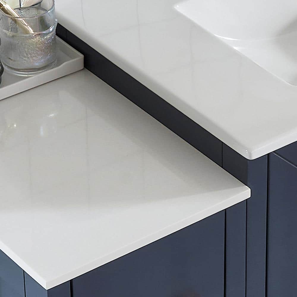 A: Absolutely. The vanity is crafted from moisture-proof solid and manufactured wood, designed to resist humidity and last over time.