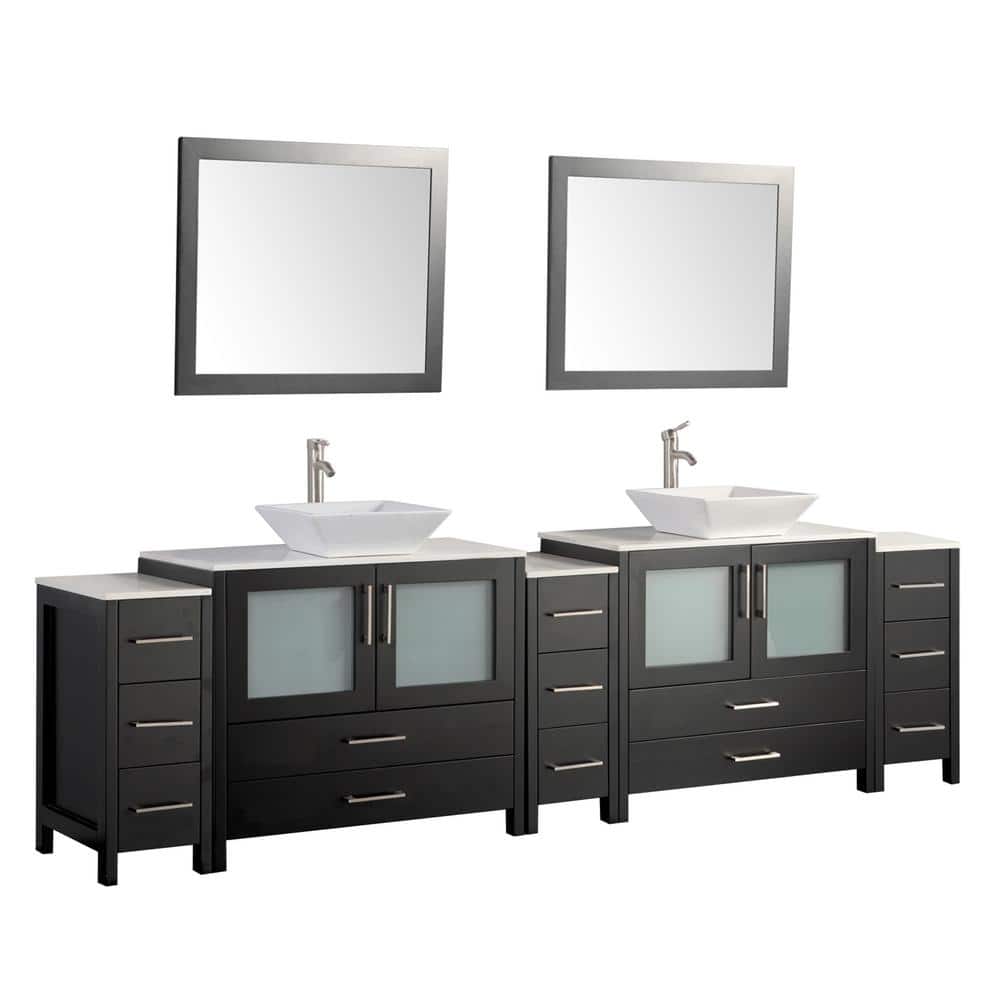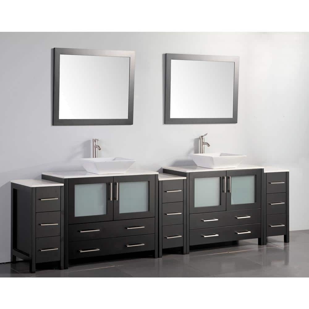Vanity Art Ravenna 108 in. W Bathroom Vanity in Espresso with Double Basin in White Engineered Marble Top and Mirror