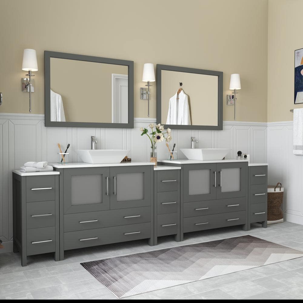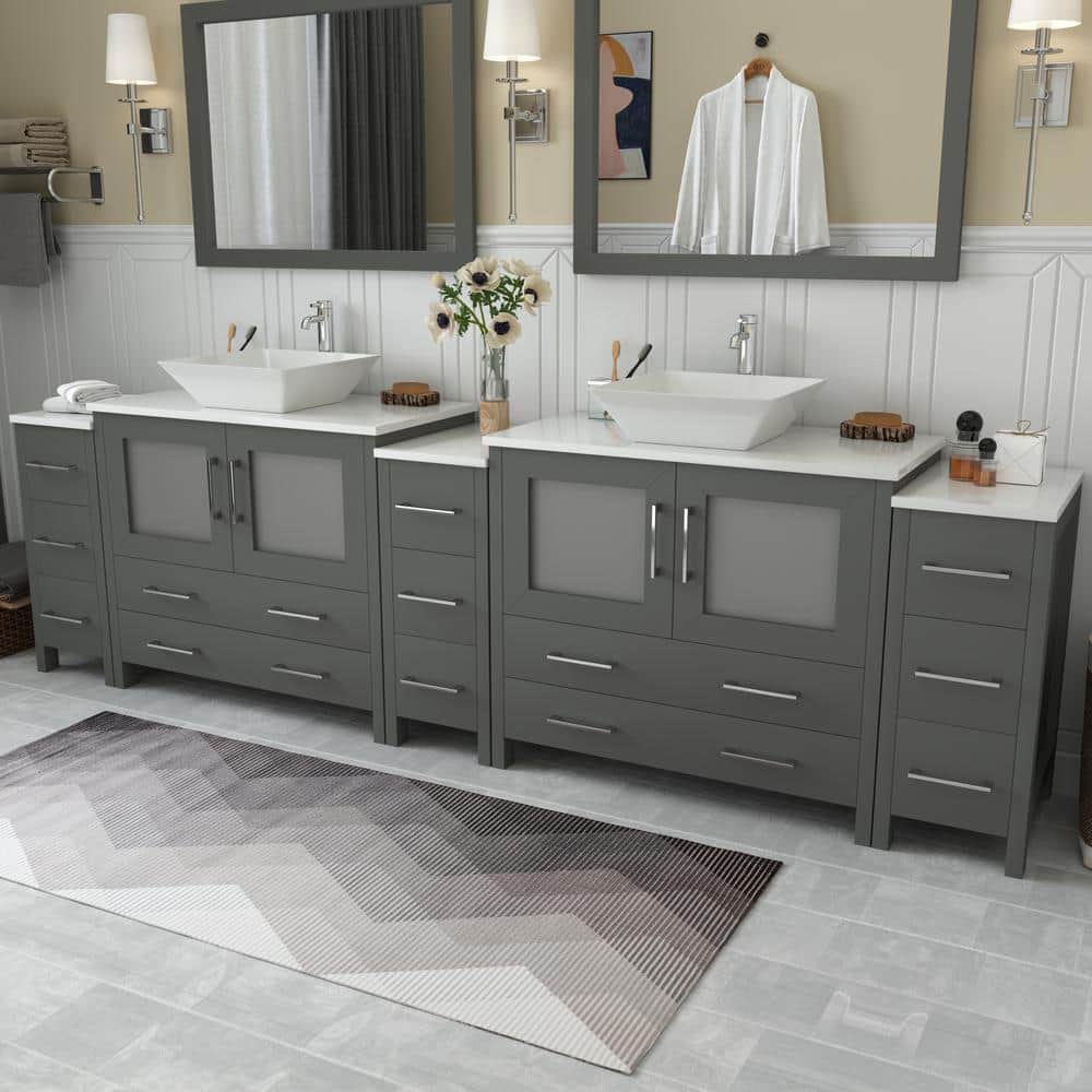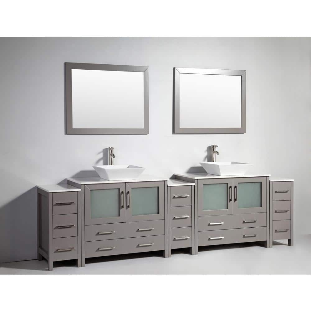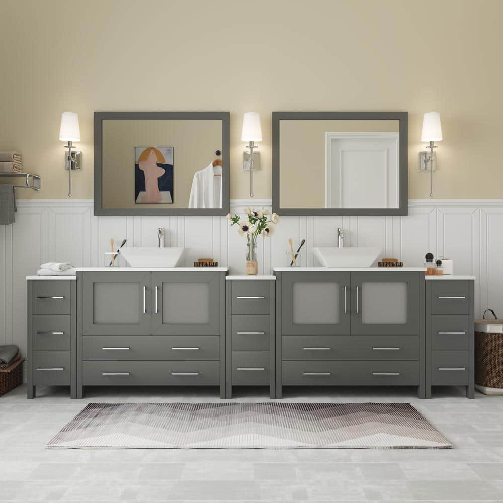 Vanity Art Ravenna 108 in. W Bathroom Vanity in Grey with Double Basin in White Engineered Marble Top and Mirrors