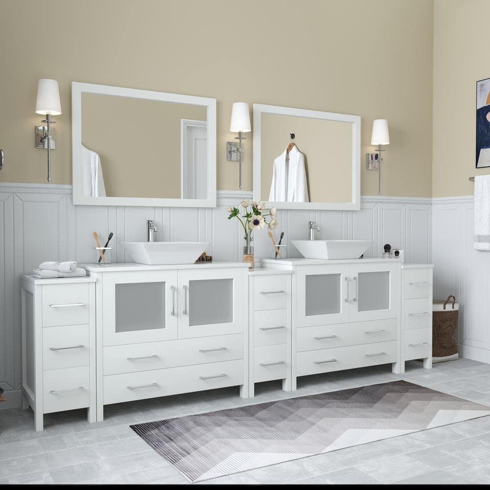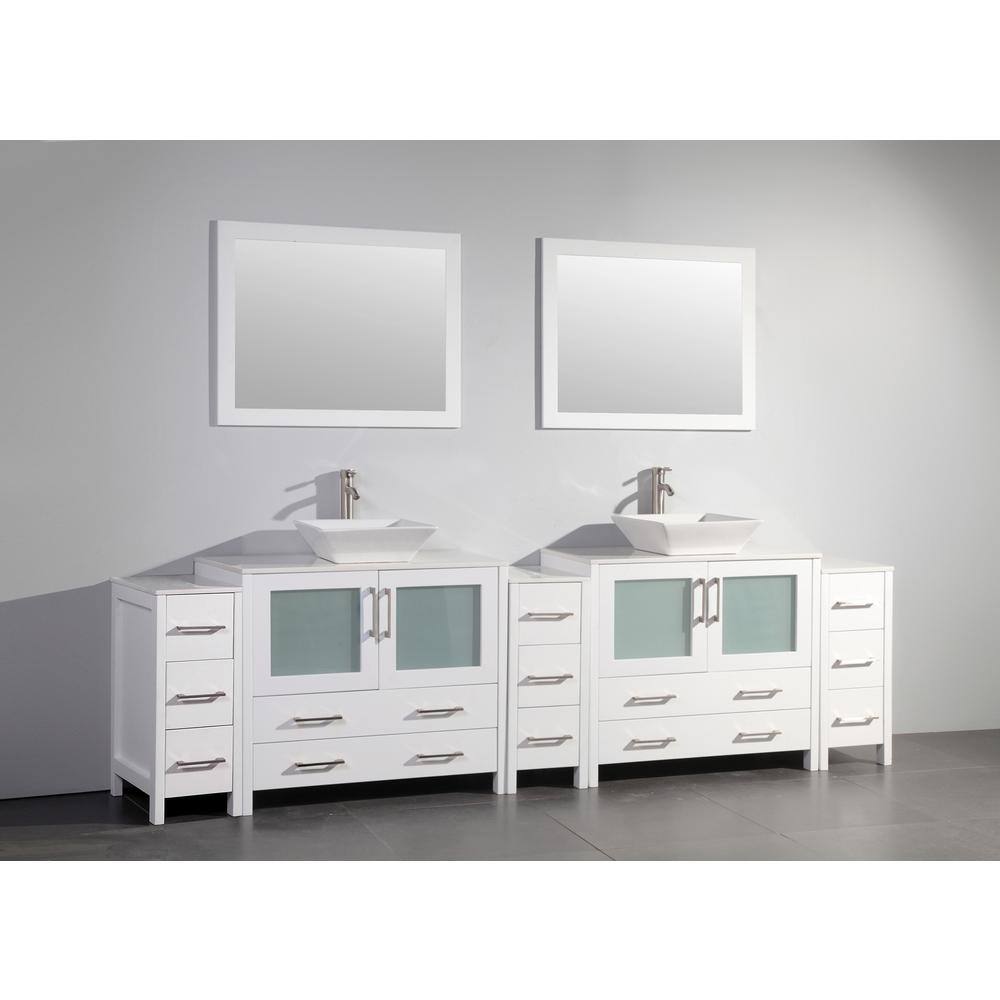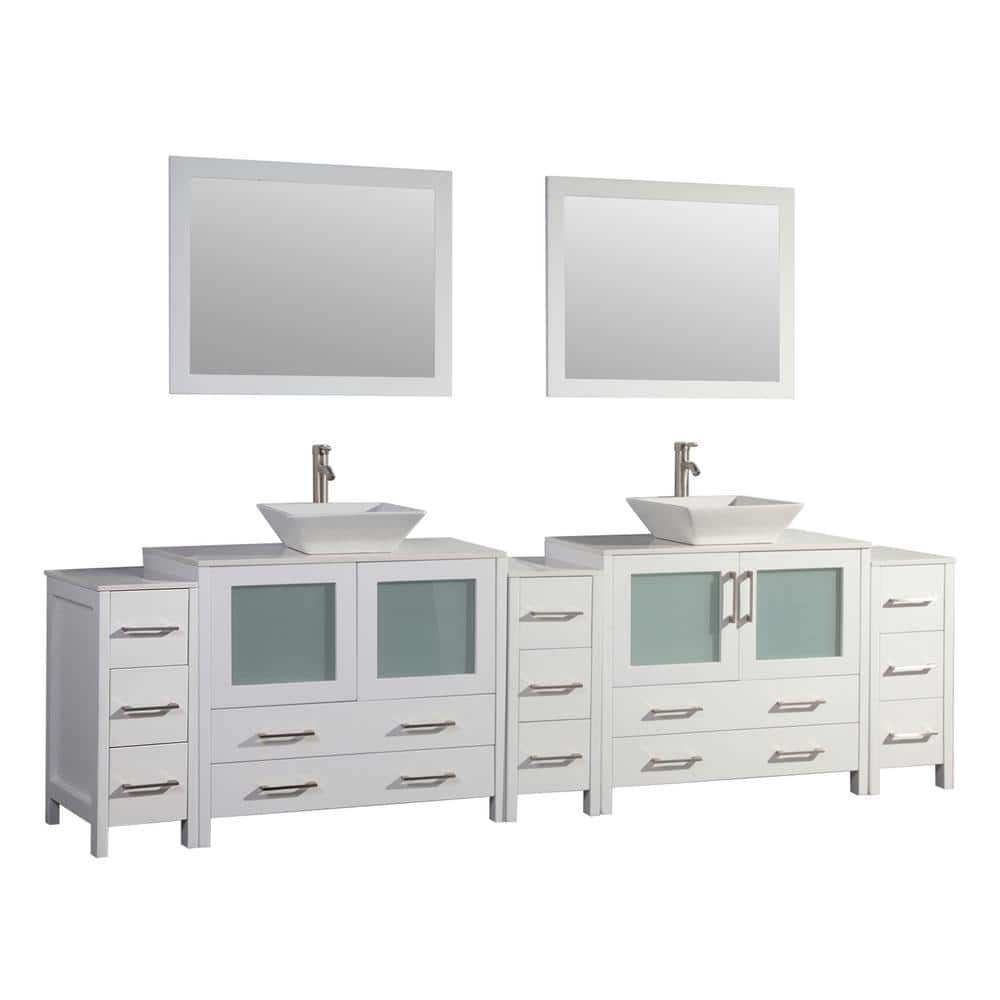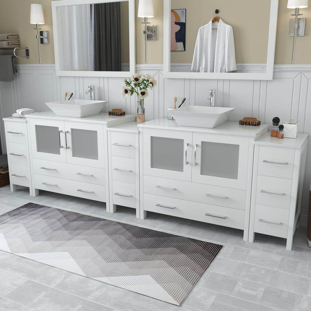 Vanity Art Ravenna 108 in. W Bathroom Vanity in White with Double Basin in White Engineered Marble Top and Mirrors