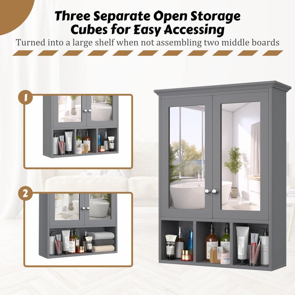 Gray Surface-Mount Bathroom Medicine Cabinet with Mirrors