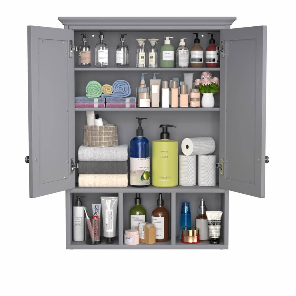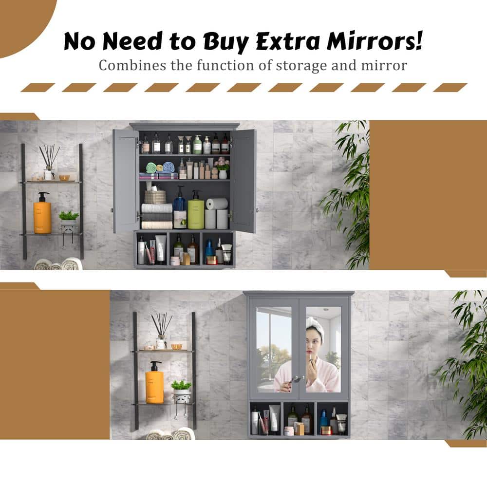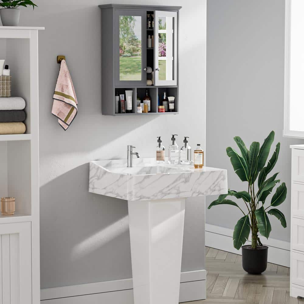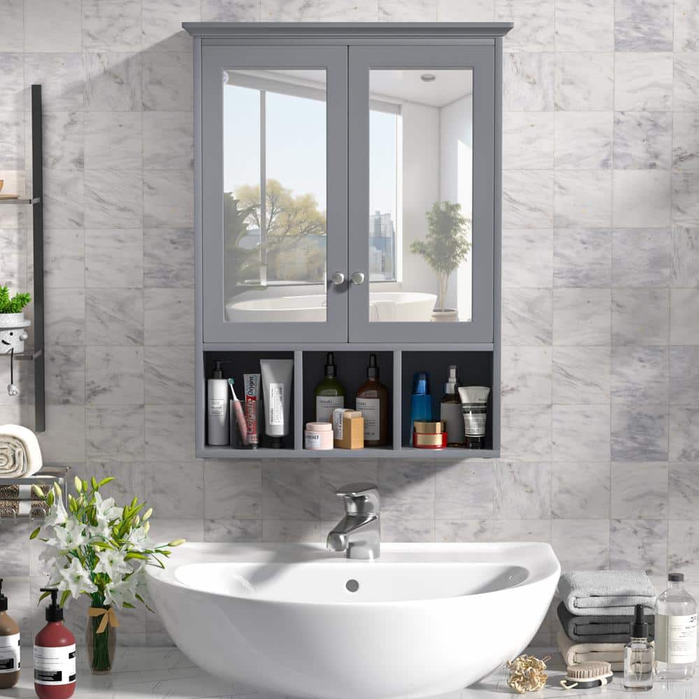 Upgrade your bathroom space with the VEIKOUS Gray Bathroom Medicine Cabinet and experience the perfect blend of style and functionality.