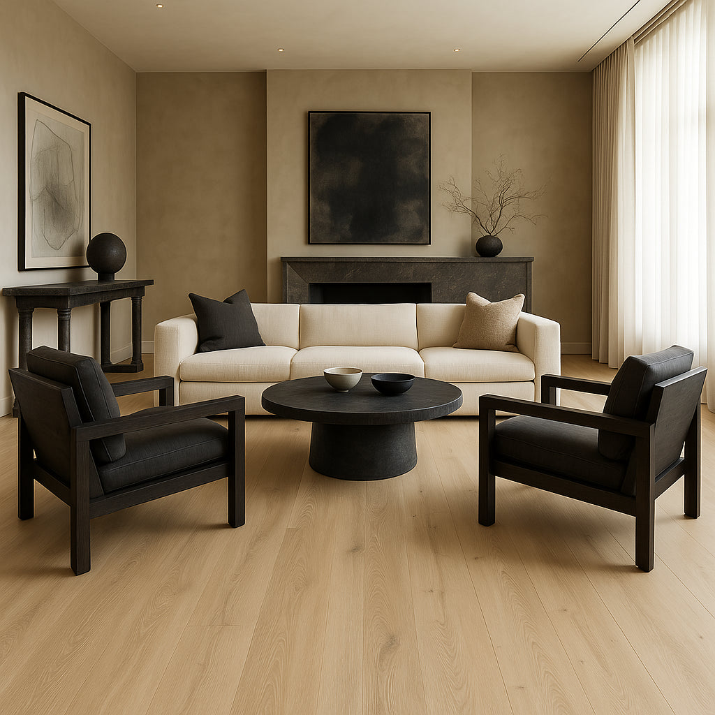 The Sebastian Sand Oak flooring transforms any room into a haven of natural beauty and sophistication. Its caramel tones and textured finish evoke the timeless charm of authentic wood, while its sustainable design aligns with modern eco-conscious living. Pair it with minimalist furniture and lush greenery to create a serene and inviting atmosphere. This flooring is not just a choice; it's a statement of style and responsibility.