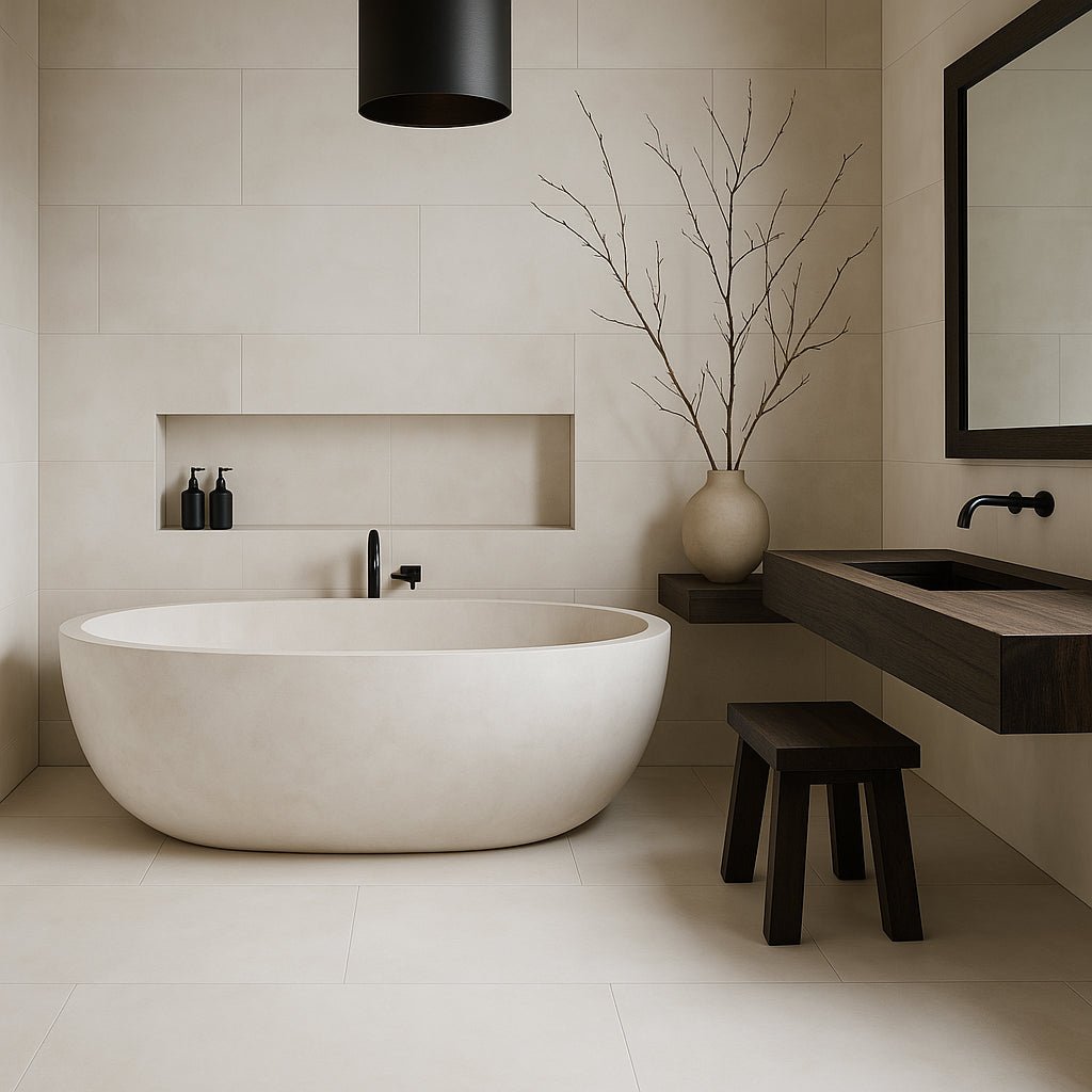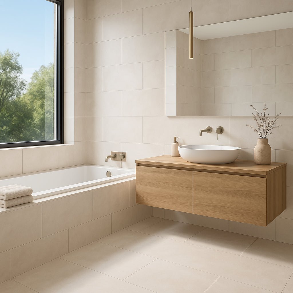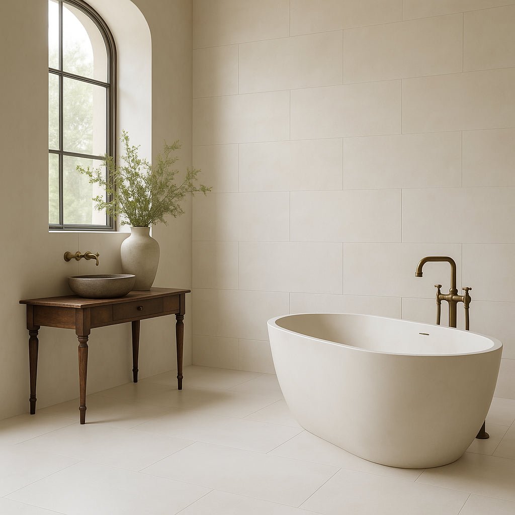 Transform your space with the Luxe Sand Matte Porcelain Tile, offering durability and a sleek cement look.