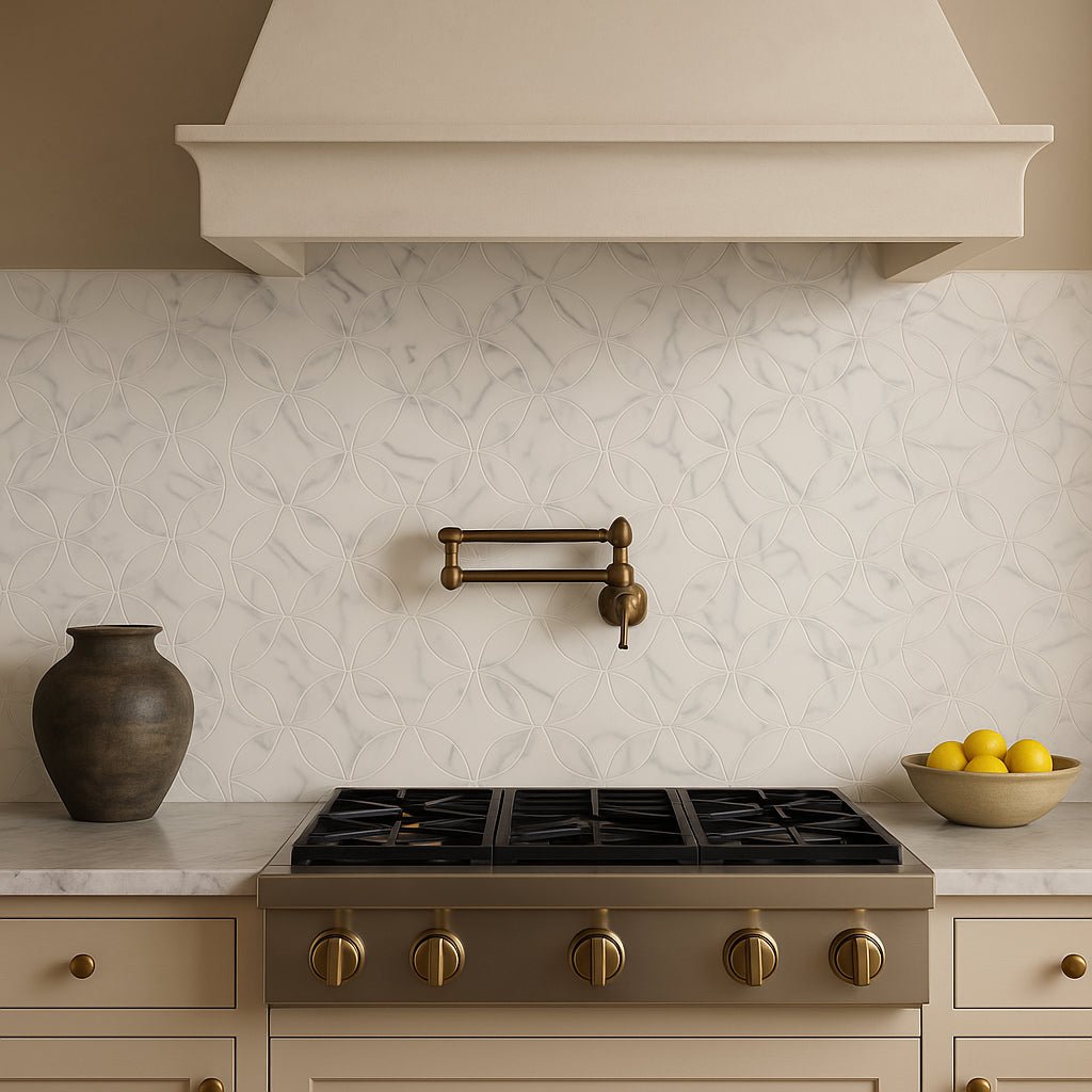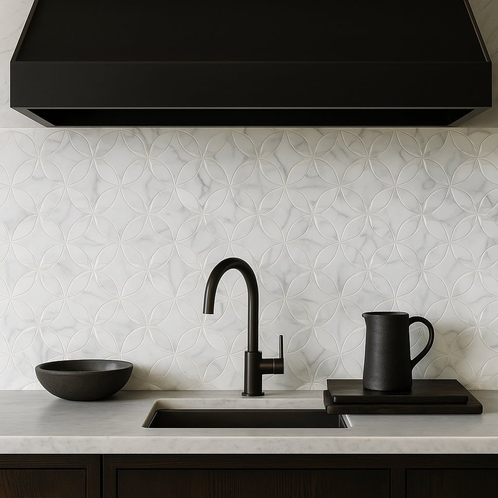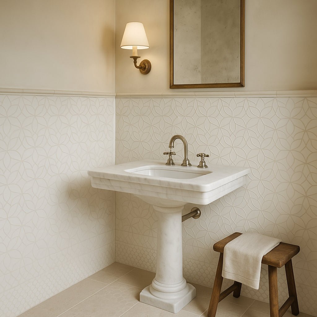 The Lotus Mop Recycled Glass Mosaic transforms any room into a sanctuary of sophistication. Its intricate flower pattern and multi-finish glass material create a luminous effect that captivates the eye. Perfect for accent walls or shower installations, this tile brings a touch of luxury and eco-conscious design to your home. Pair it with minimalist decor to let its beauty shine as the centerpiece of your space.