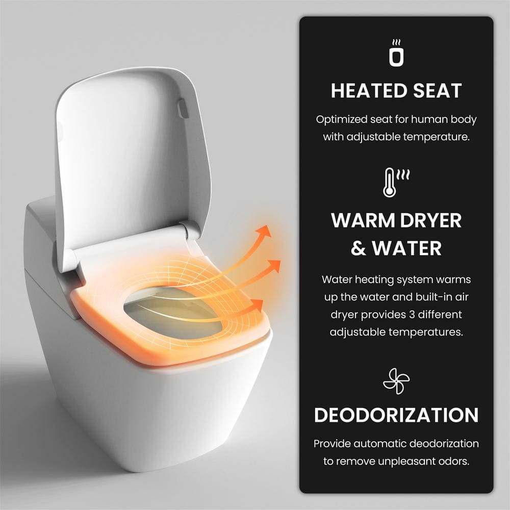 Premium Comfort Features: Enjoy a heated seat, warm water, and air dryer for a luxury experience.