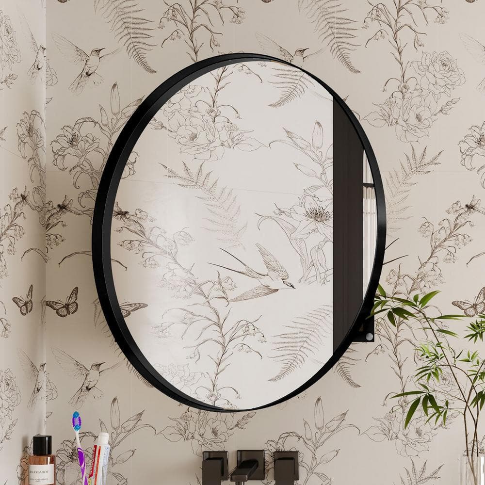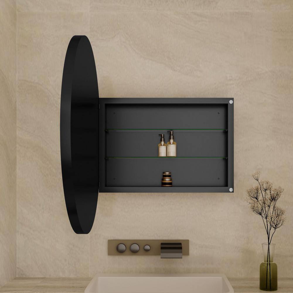 waterpar 31.5 in. W x 31.5 in. H Round Aluminum Medicine Cabinet with Mirror in Matte Black