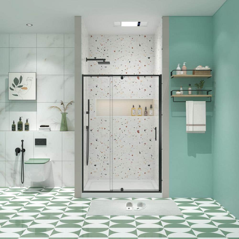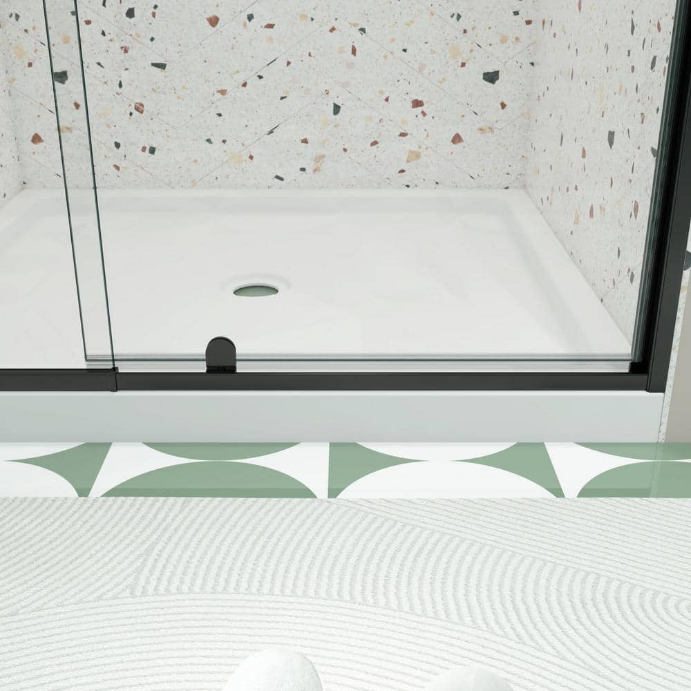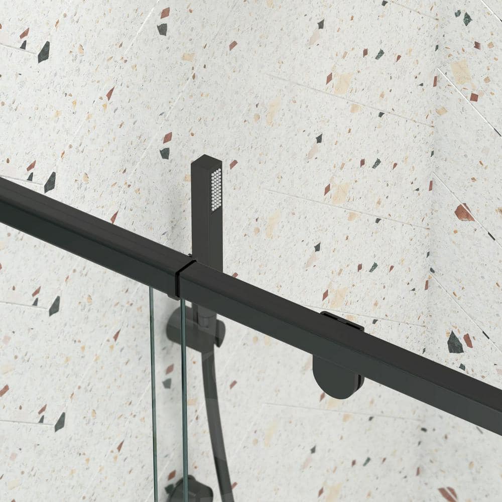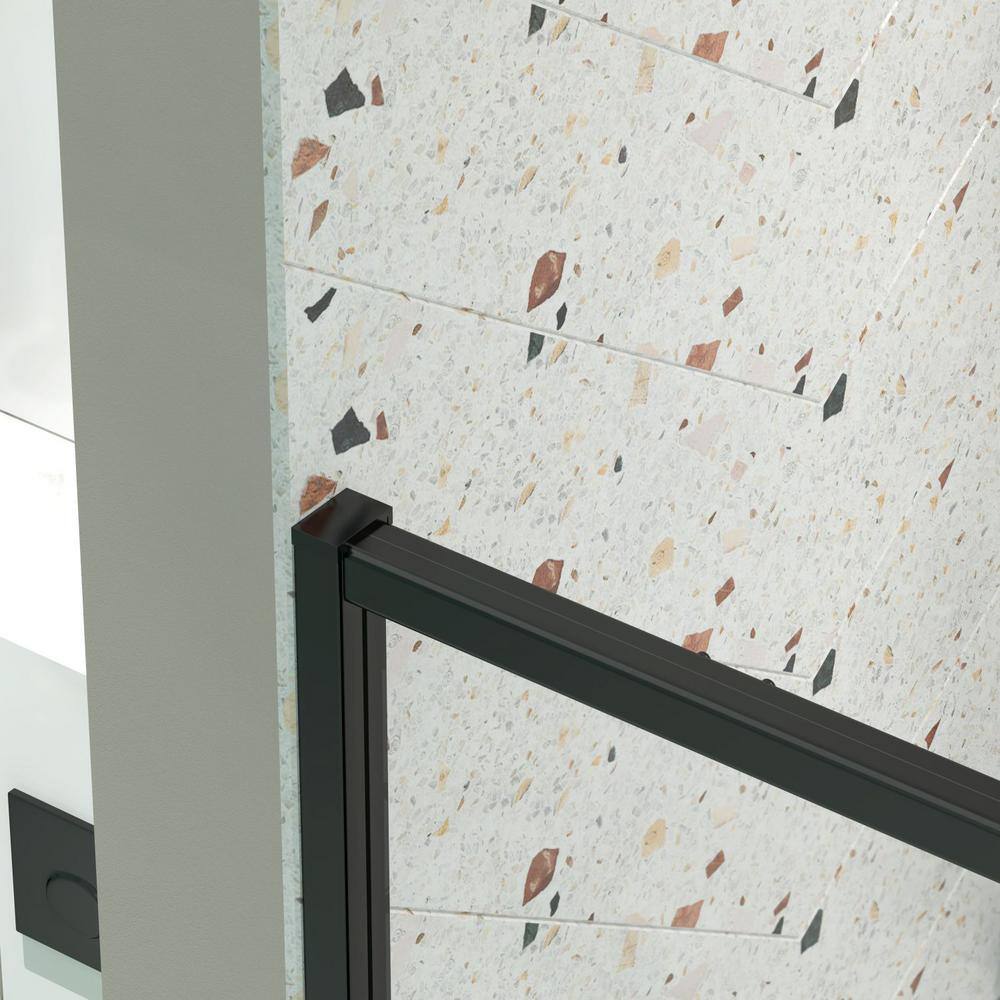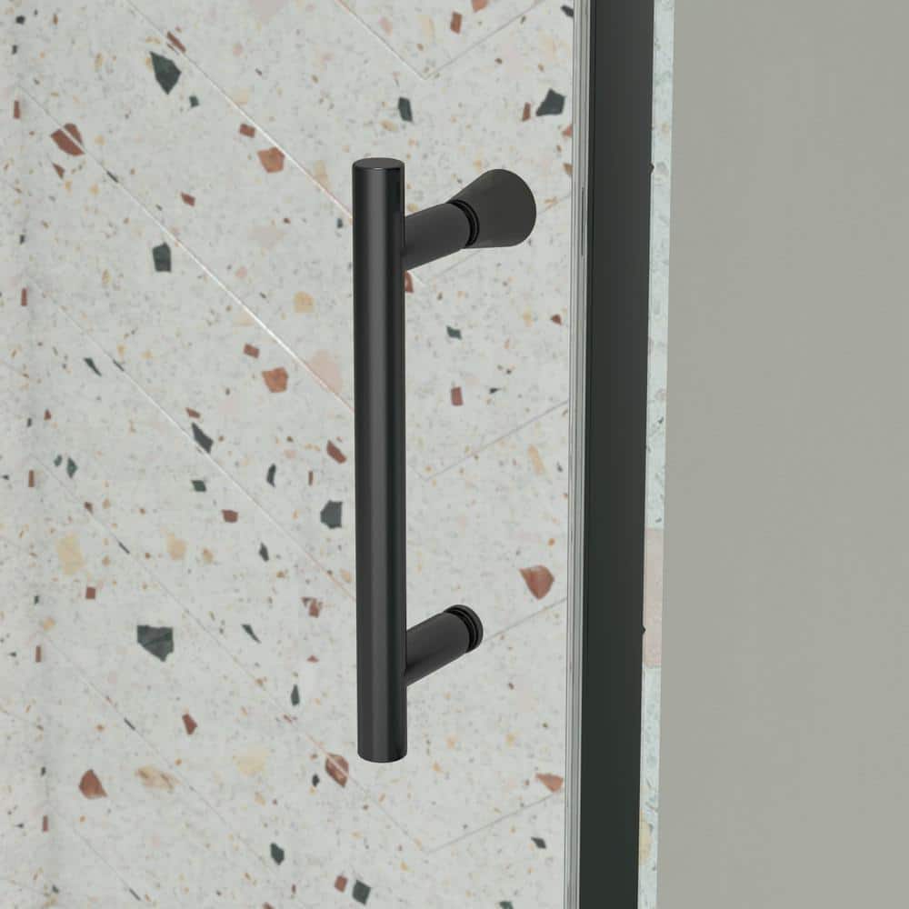 Elevate your bathroom design with the Waterpar Framed Pivot Shower Door, featuring clear glass and a striking black finish. This door is engineered for modern elegance and effortless functionality, boasting water-repellant glass that minimizes maintenance and keeps your shower looking pristine.