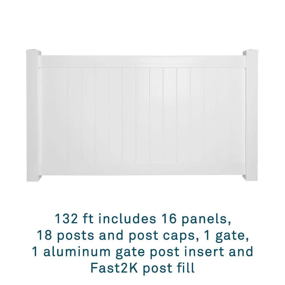 Weatherables 48 in. H x 132 ft. L Pembroke White Vinyl Flat Top Complete Privacy Fence Project Pack