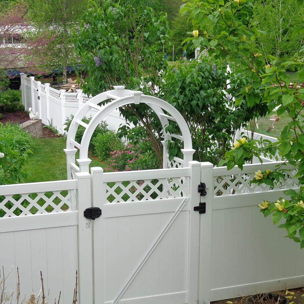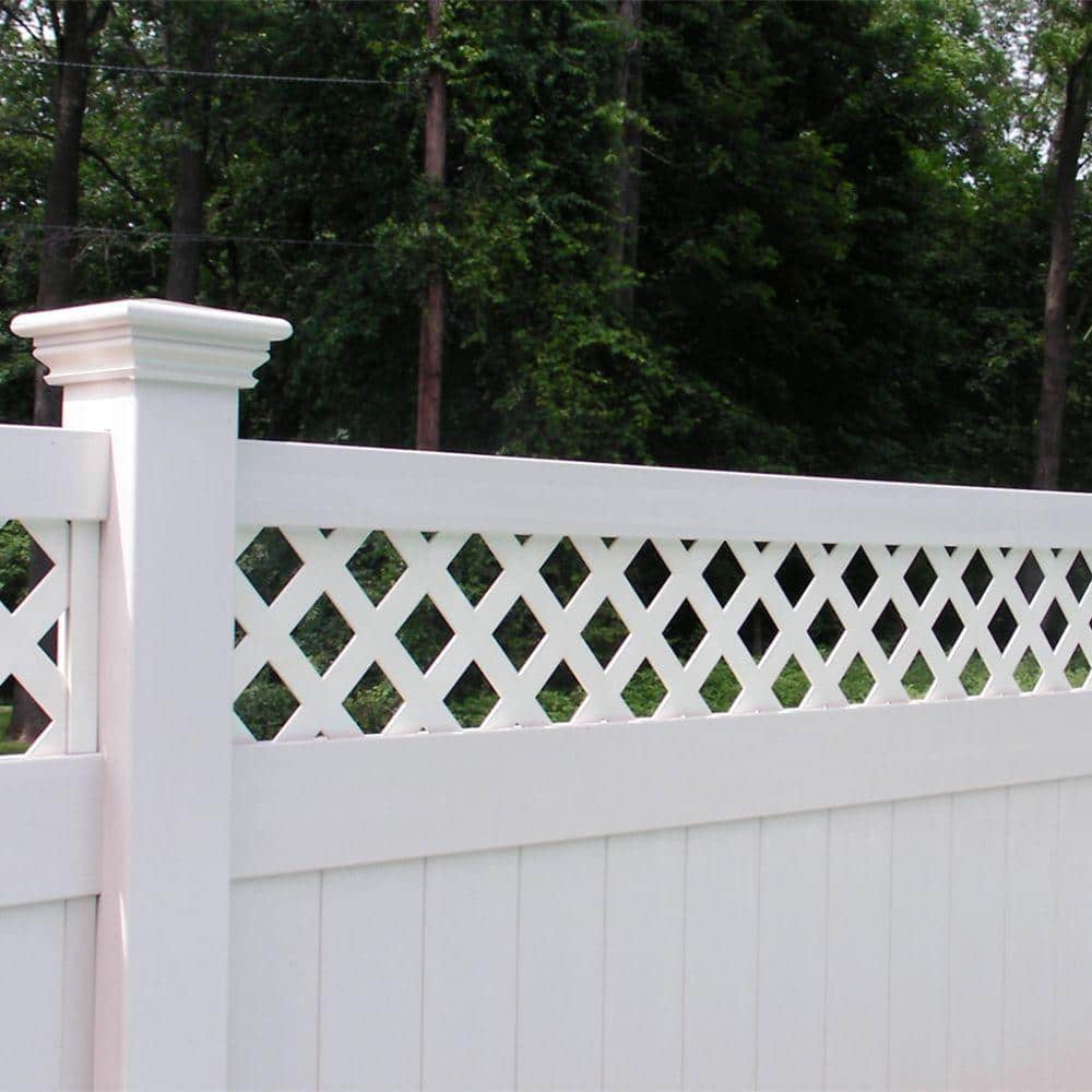 Envision a serene haven enveloped by the pristine elegance of the Ashton White Vinyl Privacy Fence. Its decorative lattice top, a nod to classic charm, seamlessly integrates sophistication with function. Use the panels to frame a tranquil garden retreat, where dappled sunlight filters through the greenery, casting enchanting patterns on your patio. This fence isn’t just a barrier; it’s a brilliant canvas, transforming your outdoor space into a polished sanctuary with lasting allure, making it indispensable for those who cherish refined outdoor living.