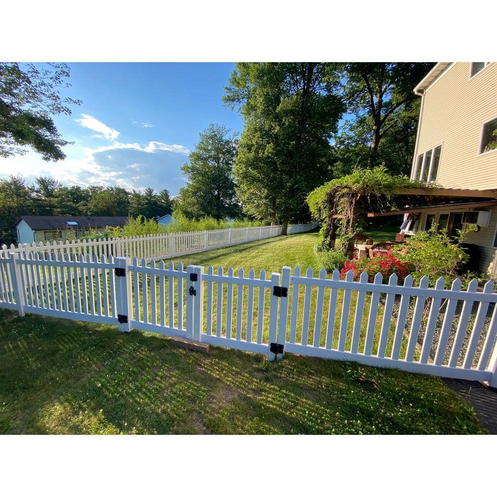 The Weatherables Chelsea 8 ft. x 3 ft. Vinyl Picket Fence Double Gate Kit offers a sophisticated blend of style and strength. With its durable commercial-grade vinyl construction and aluminum inserts, this gate promises lasting performance without the hassle of maintenance. Easy to assemble with self-closing hinges and a key-lockable latch, it's perfect for pros and DIY enthusiasts alike.