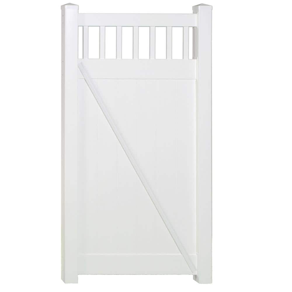 Weatherables Mason White Vinyl Privacy Fence Gate Kit - 44.5 in. W x 84 in. H