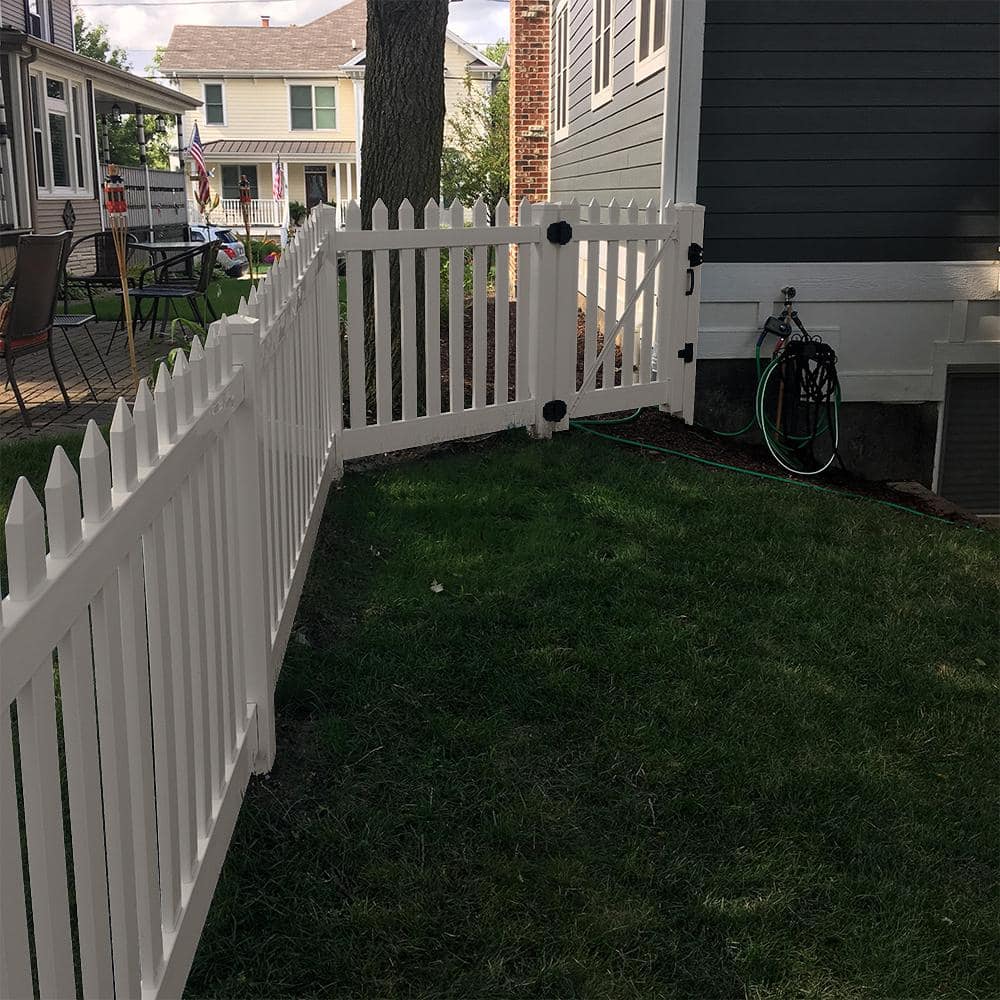 The Weatherables Plymouth Vinyl Picket Fence transcends ordinary boundaries, merging practicality with charm in your landscape design. Envision a garden framed by its classic white, dog-eared pickets that evoke nostalgia and invite relaxation. Style it by bordering a lush flower bed, the juxtaposition enhancing the vibrant colors of nature. This fence is not just an enclosure; it's a statement piece that embodies effortless sophistication in outdoor living.