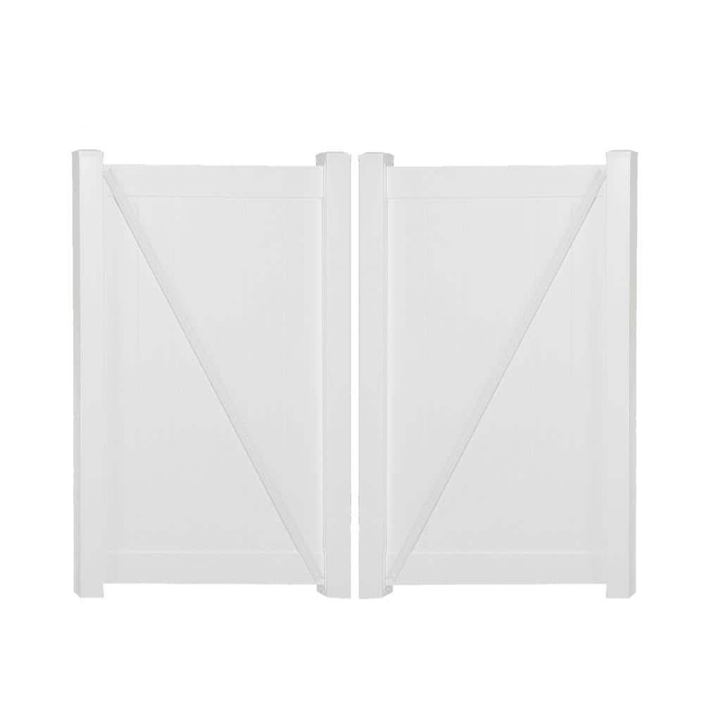Weatherables Savannah 7.4 ft. W x 5 ft. H White Vinyl Privacy Double Fence Gate Kit