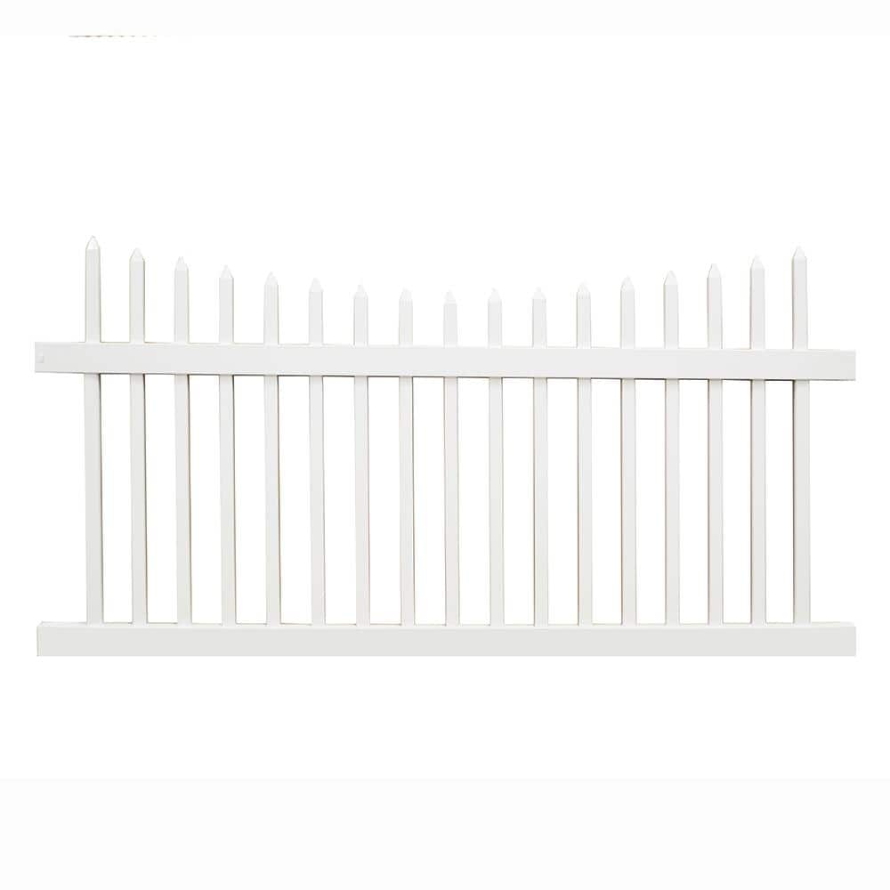 Weatherables Stratford 5 ft. x 8 ft. White Vinyl Picket Fence Panel Kit