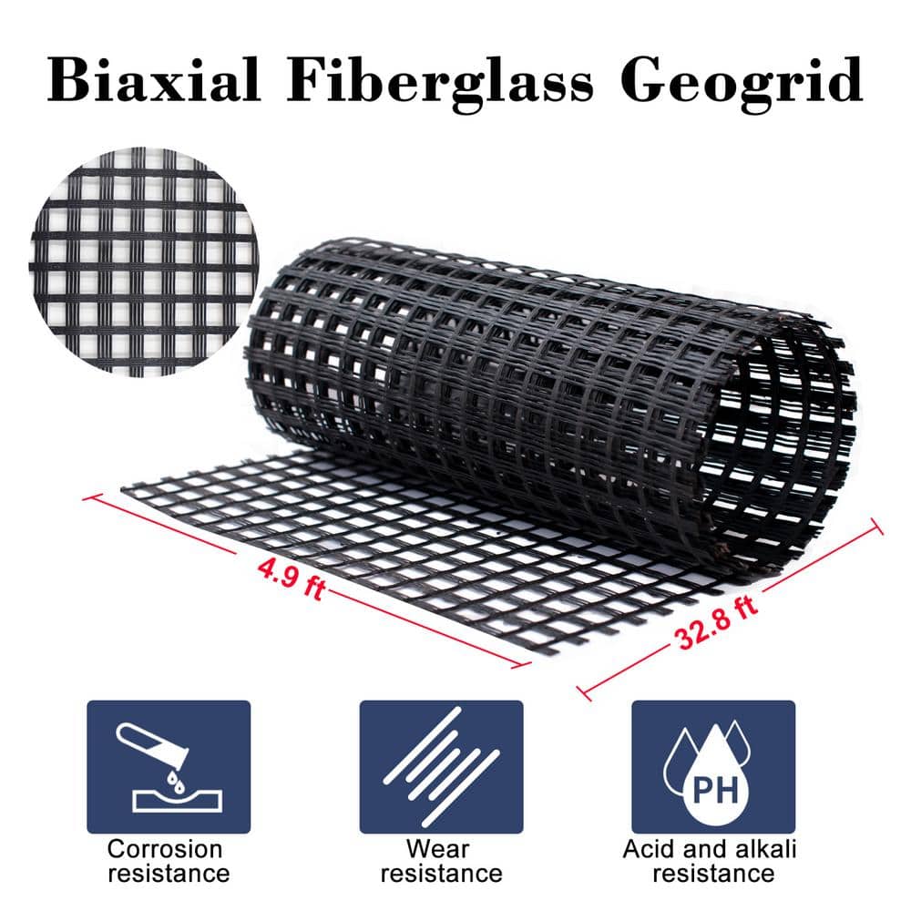 Wellco 4.9 ft. W x 32.8 ft. L x 0.2 in. H 80KN Biaxial Geogrid Black Plastic Paver Base for Landscaping, Sheds, Pathway