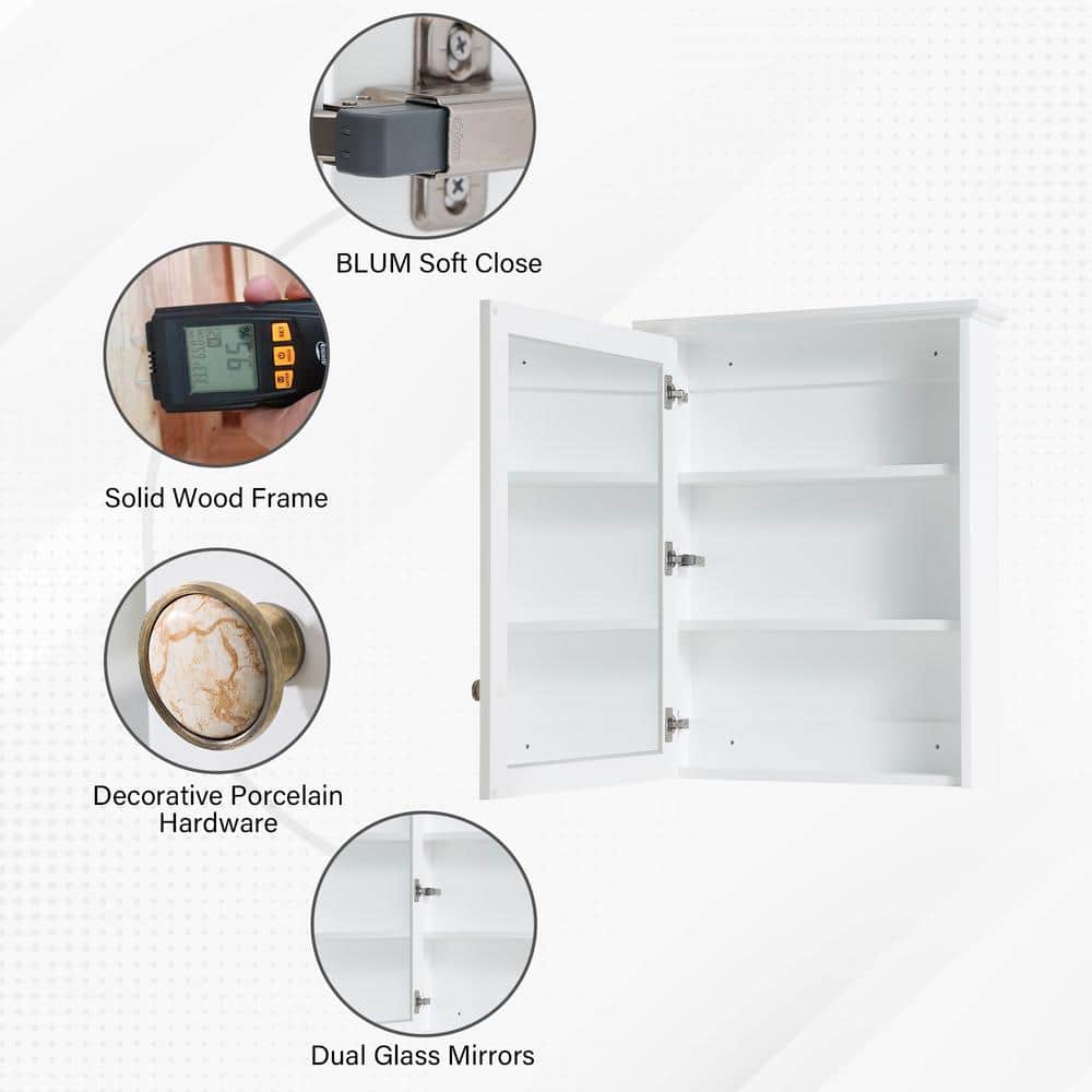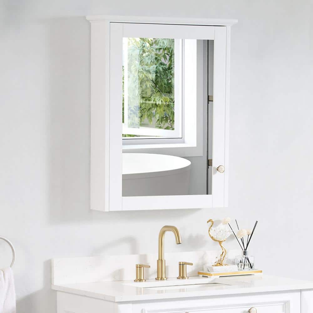 Imagine stepping into a bathroom oasis where elegance meets functionality with the WELLFOR Medicine Cabinet. Its crisp white wood frame adds a touch of sophistication while the eco-friendly mirror effortlessly amplifies light, transforming any small powder room into a spa-like retreat. Pair this cabinet with lush green plants and warm metallic fixtures for a balanced and serene ambiance. Undoubtedly, this piece is not merely functional storage; it is an indispensable element of opulent bathroom living.