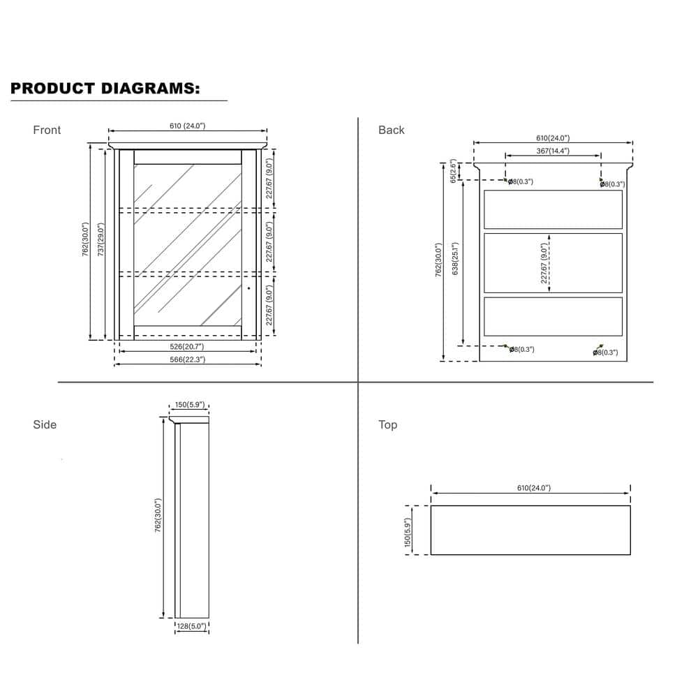 The WELLFOR 24 in. x 30 in. Medicine Cabinet combines timeless elegance with practical functionality, perfect for any bathroom setting. Made from eco-friendly solid wood and featuring a copper-free mirror, this cabinet delivers both durability and style. With two spacious shelves and a soft-close hinge system, it offers ample storage and smooth operation.