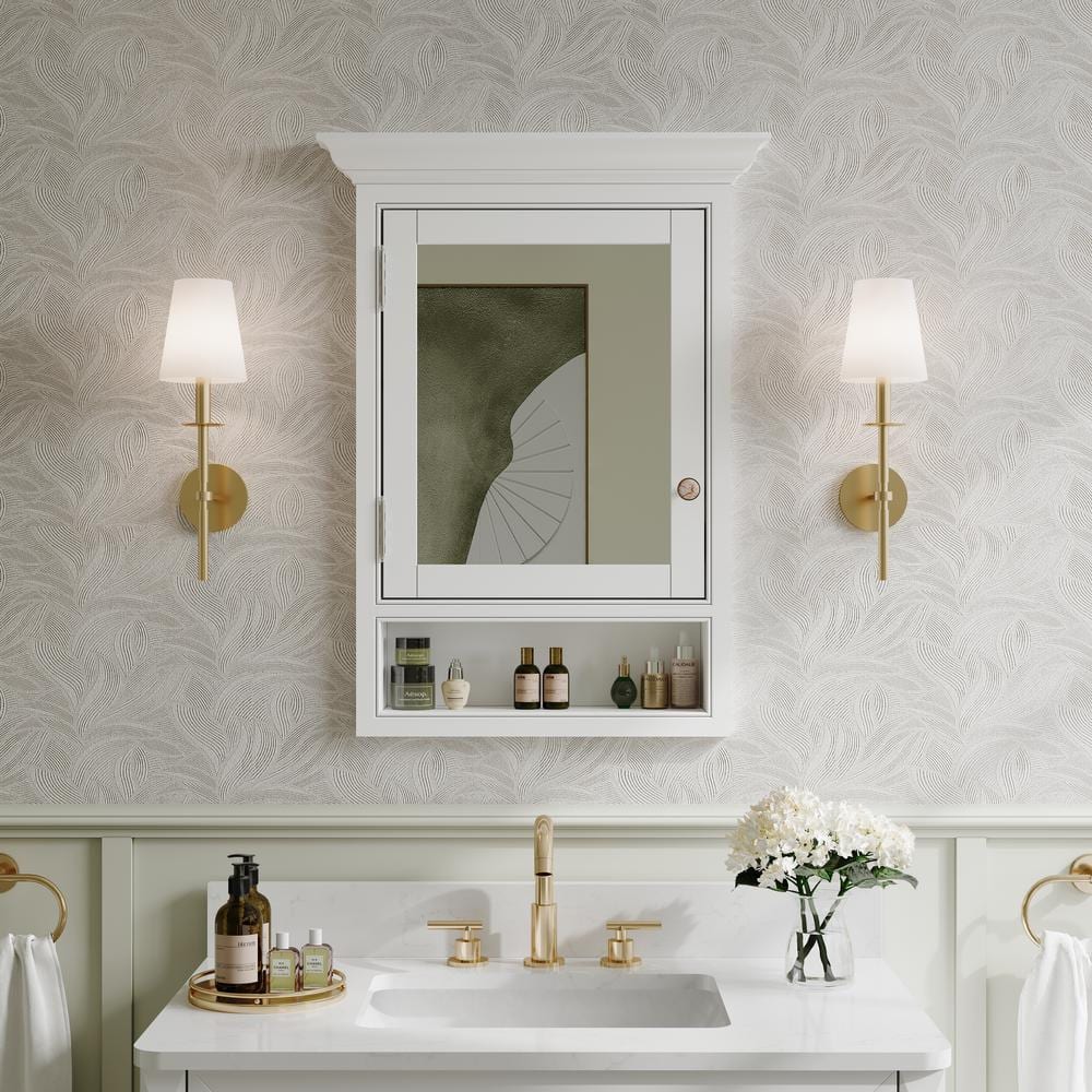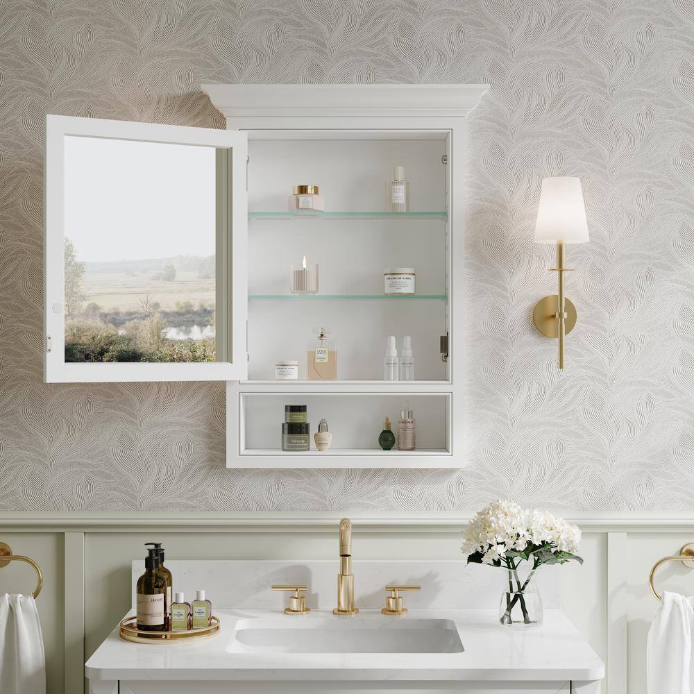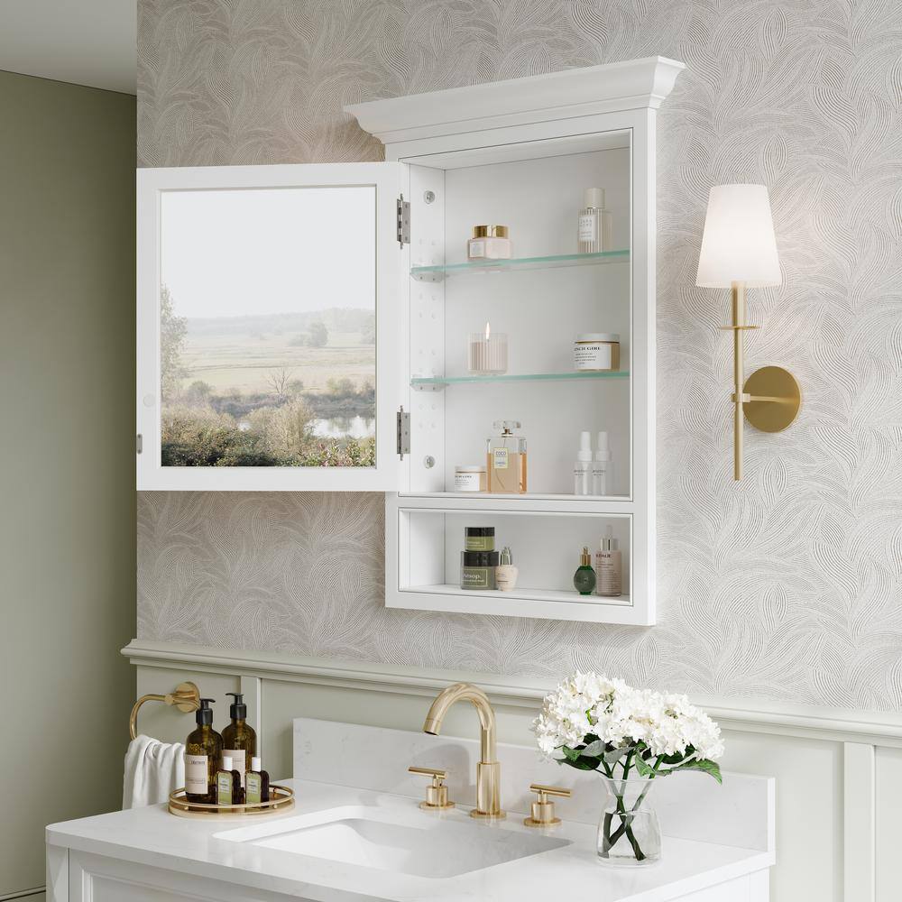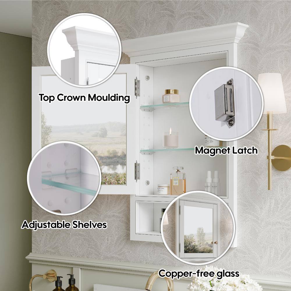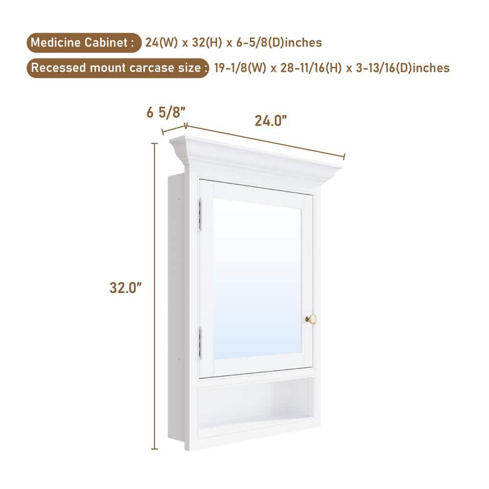 The WELLFOR 24" x 32" Recessed Medicine Cabinet combines timeless design with practical functionality, perfect for any bathroom setting. Engineered from durable solid wood, it features a magnetic door closure for ease of use and adjustable glass shelves for versatile storage. Enhance your bathroom with this elegant and seamless recessed cabinet solution.