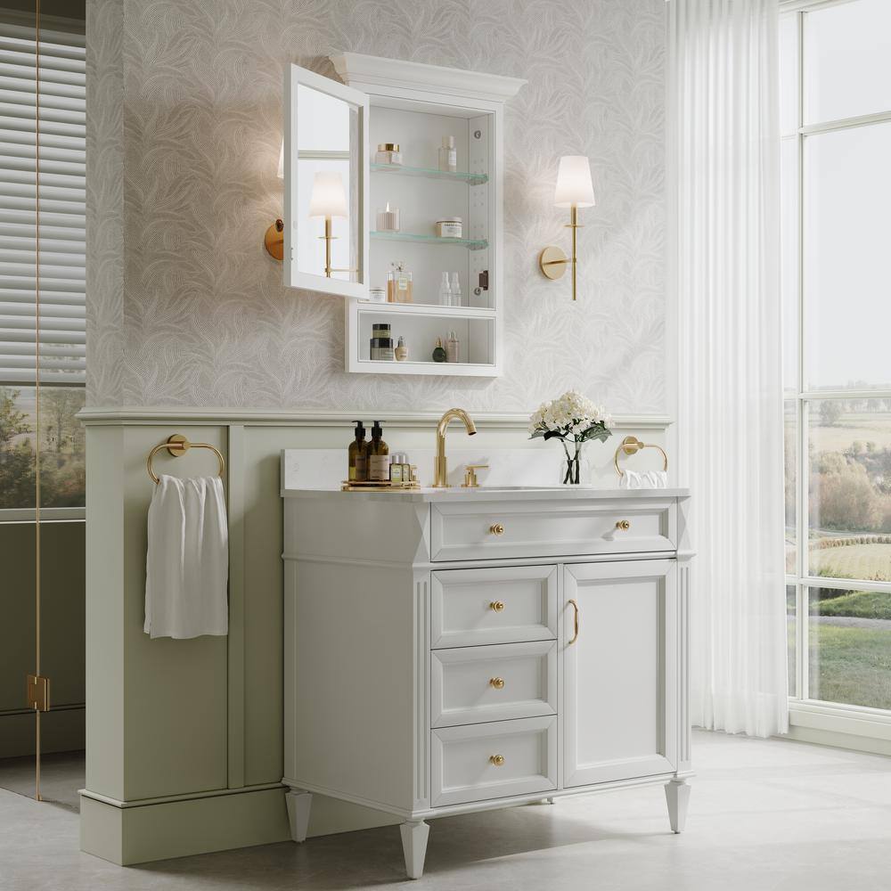 Embrace the transformational beauty of WELLFOR's recessed medicine cabinet, where form meets function in the most timeless way. The dual-sided mirrors seamlessly reflect light and enhance spatial perception, effortlessly integrating into any opulent bathroom design. Style with chic vials and modern accessories on the adjustable glass shelves to transform your daily routine into a luxurious ritual. This cabinet is not just a storage solution; it's an indispensable component of a sophisticated bathroom sanctuary.