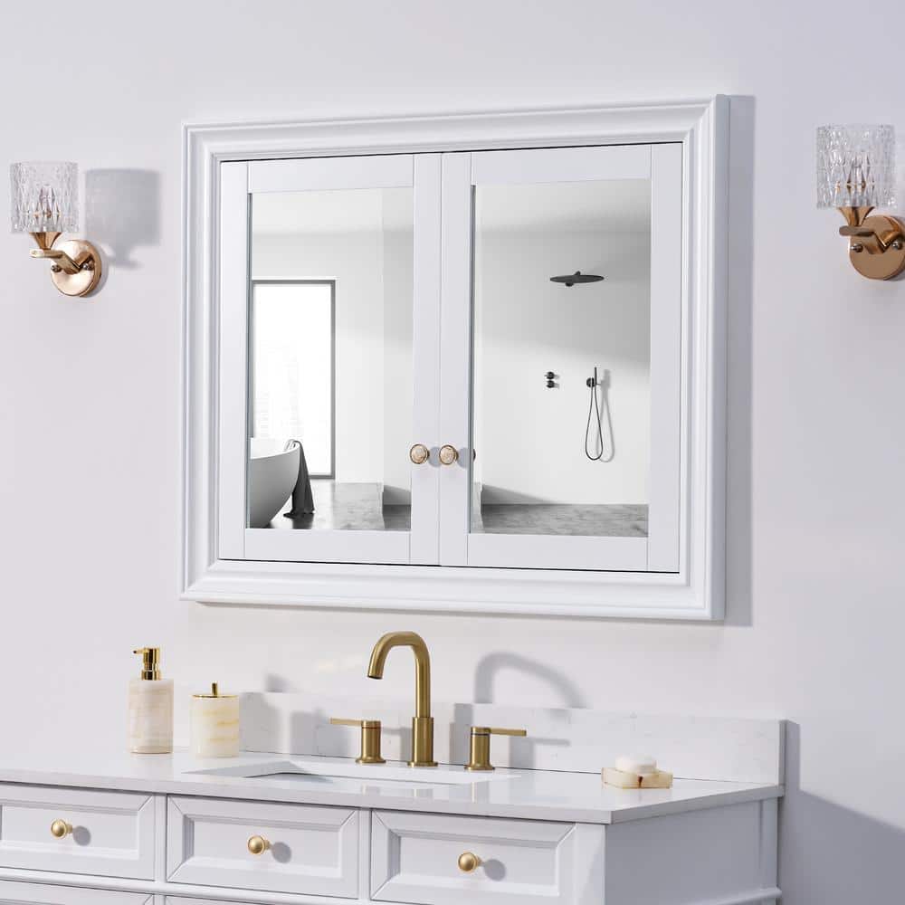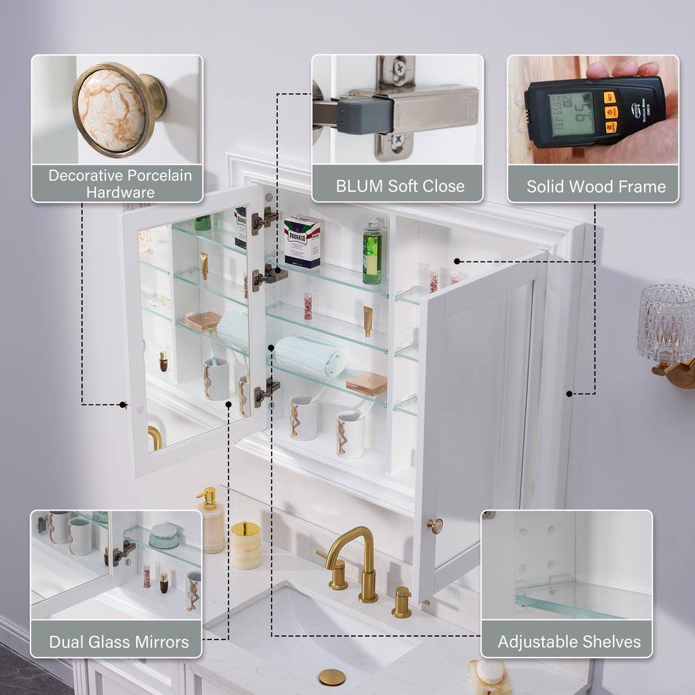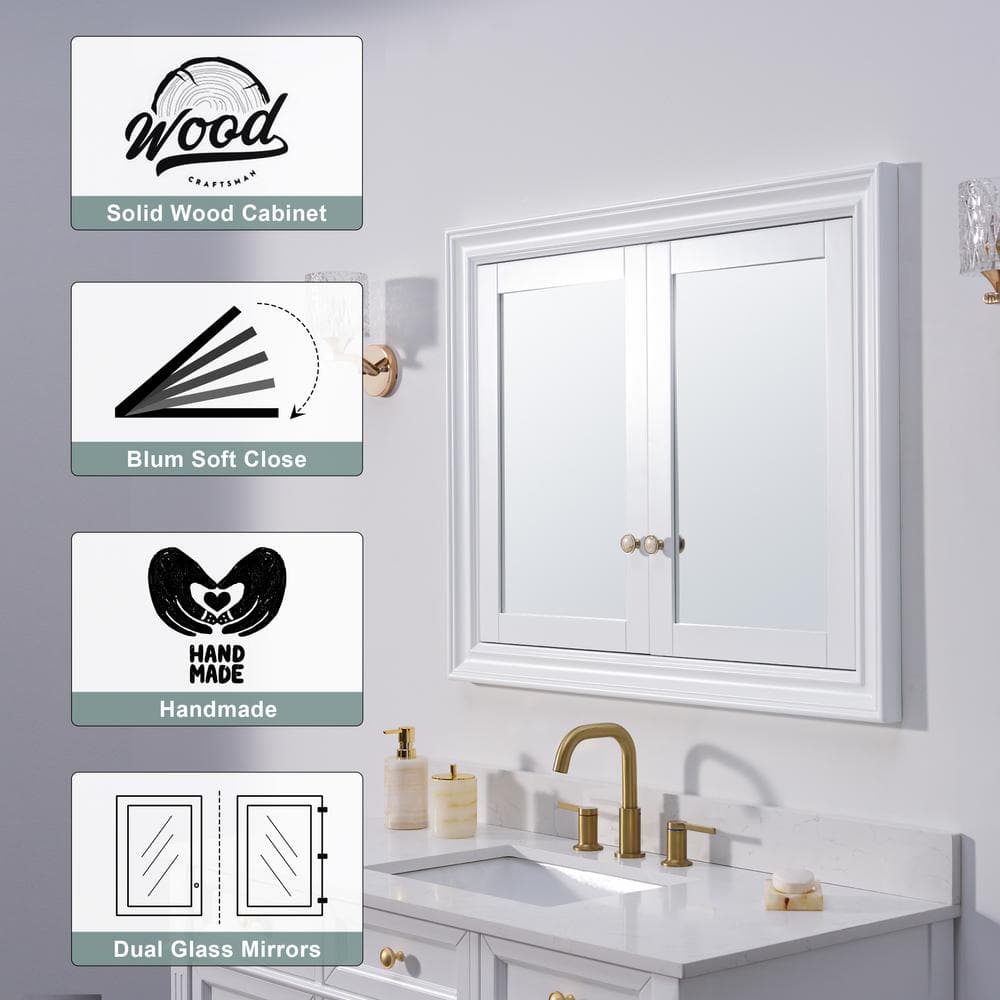 Maximize your bathroom's space and style with the WELLFOR Solid Wood Recessed Medicine Cabinet. Featuring dual-side mirrored soft-close doors and ample shelving, this cabinet combines elegant design with practical storage solutions. Crafted from durable solid wood, its recessed installation ensures a seamless, uncluttered look.