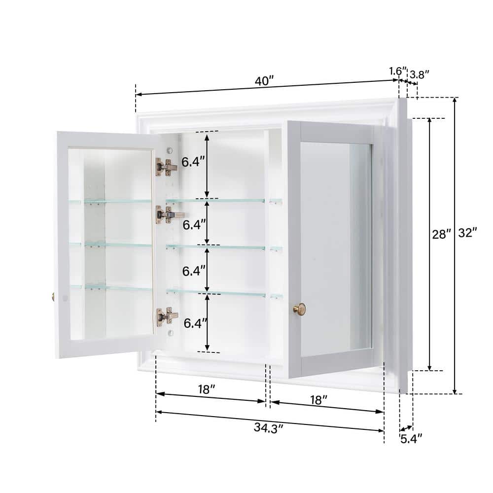 40" x 32" Solid Wood Recessed Medicine Cabinet with Mirror