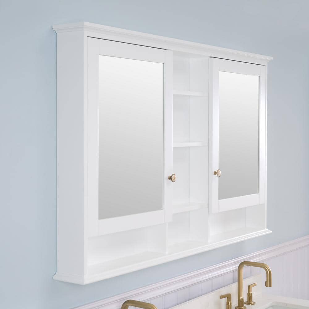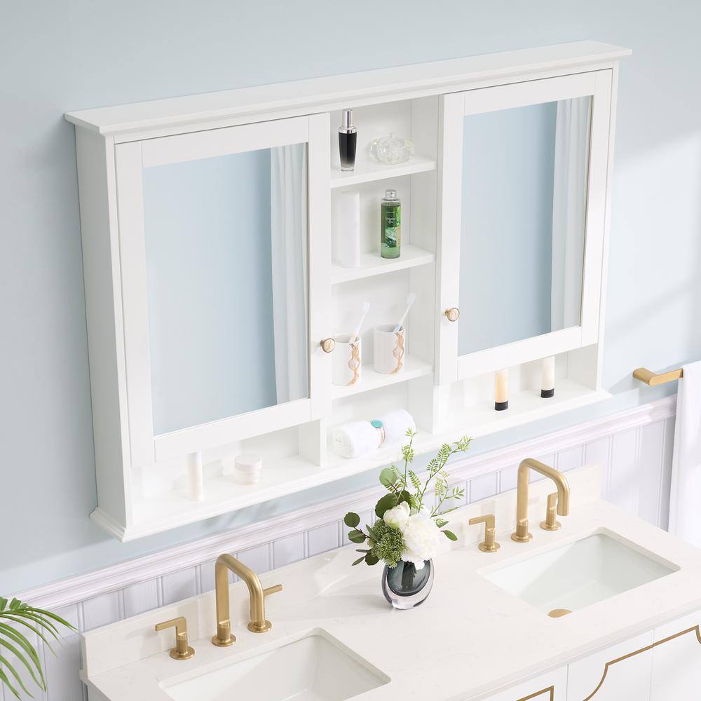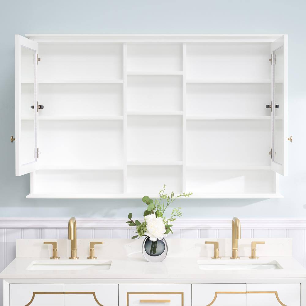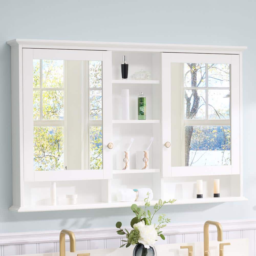 WELLFOR 55 in. W x 35 in. H Rectangular White Wood Surface Mount Medicine Cabinet with Mirror and Shelves, 2-Soft Close Doors