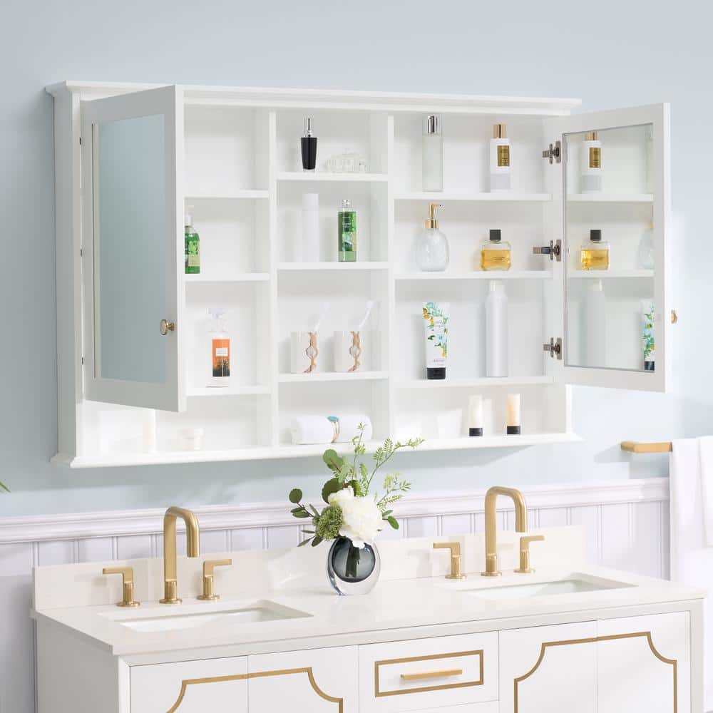 Transform your everyday bathroom routine into a luxurious self-care experience with the WELLFOR Medicine Cabinet. Its expansive mirrored doors reflect light beautifully, enlarging your space while offering a chic touch of modern sophistication. Highlight its refined porcelain-accented hardware by pairing it with polished chrome faucet fixtures or a vintage vanity. This cabinet is not just a storage solution; it's a statement piece that evokes both function and finesse, making your bathroom a sanctuary of stylish serenity.