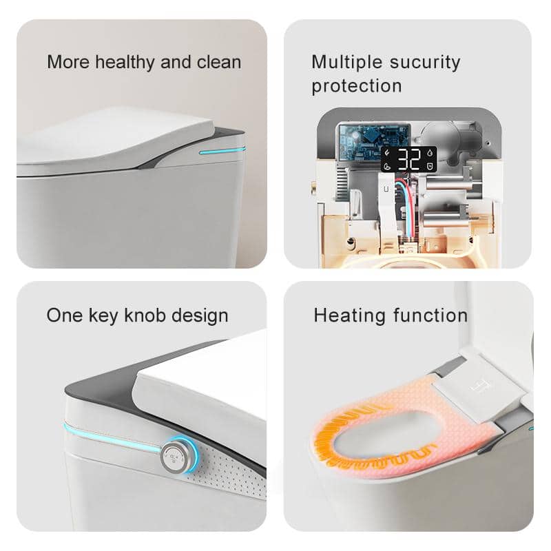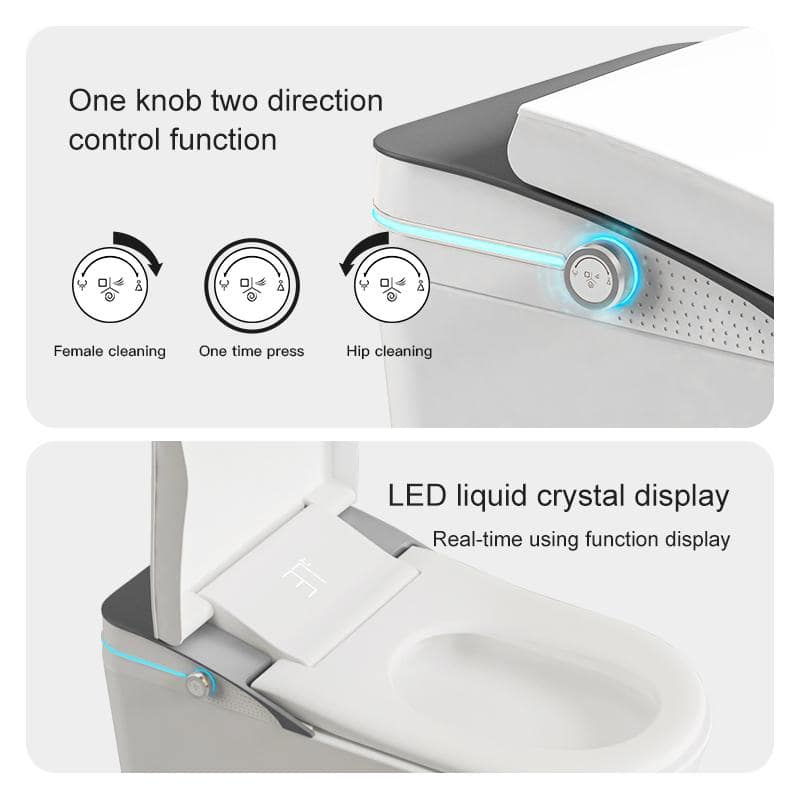 Elevate your bathroom experience with the WELLFOR Elongated Smart Bidet Toilet. This cutting-edge toilet offers auto open and close, automatic flushing, a heated seat, and warm air drying for ultimate convenience and luxury. With foot sensing technology and built-in aromatherapy, it transforms any space into a sophisticated sanctuary.