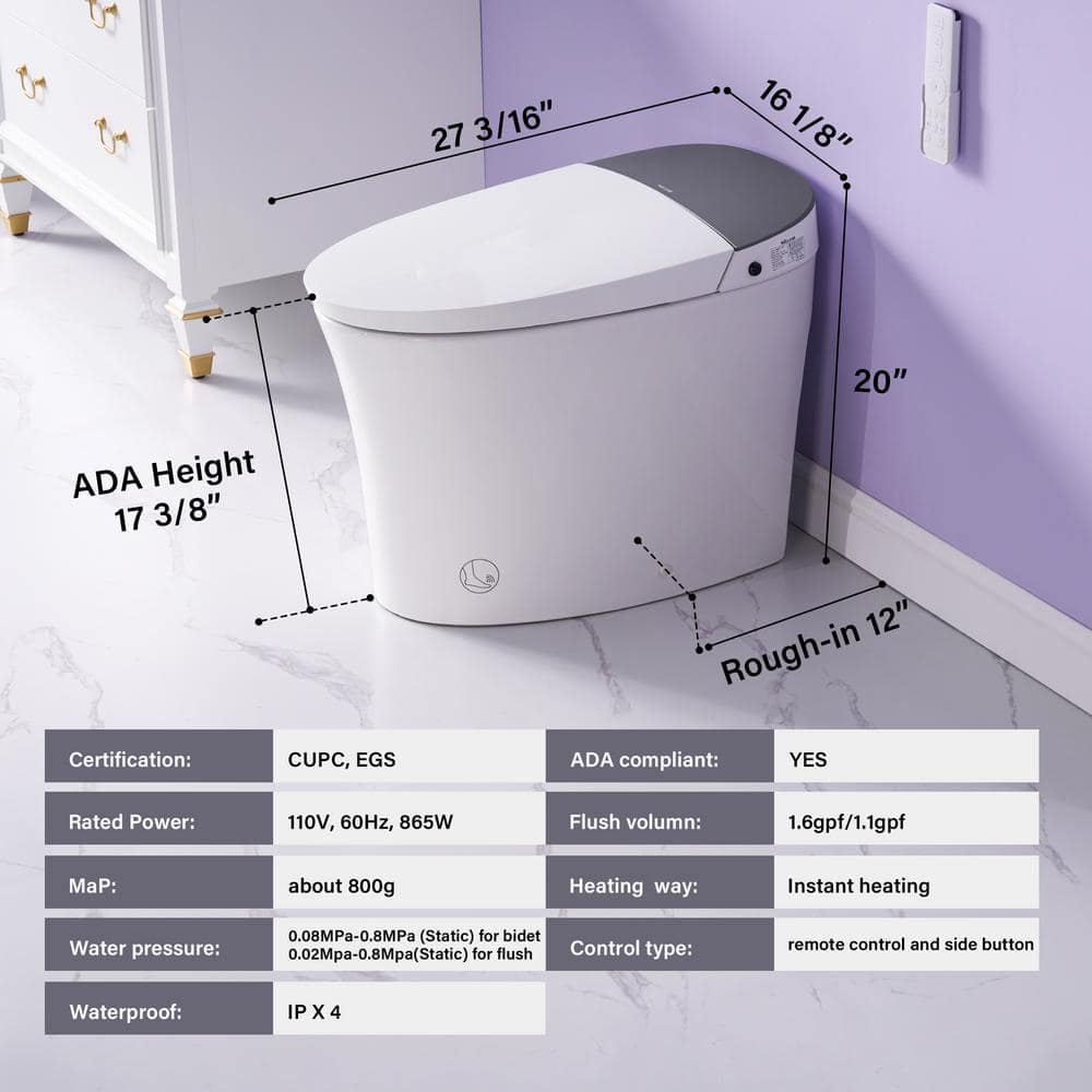 Smart Features: Remote control and side knob operations, foot sensor flush, and night-light functionality enhance convenience.