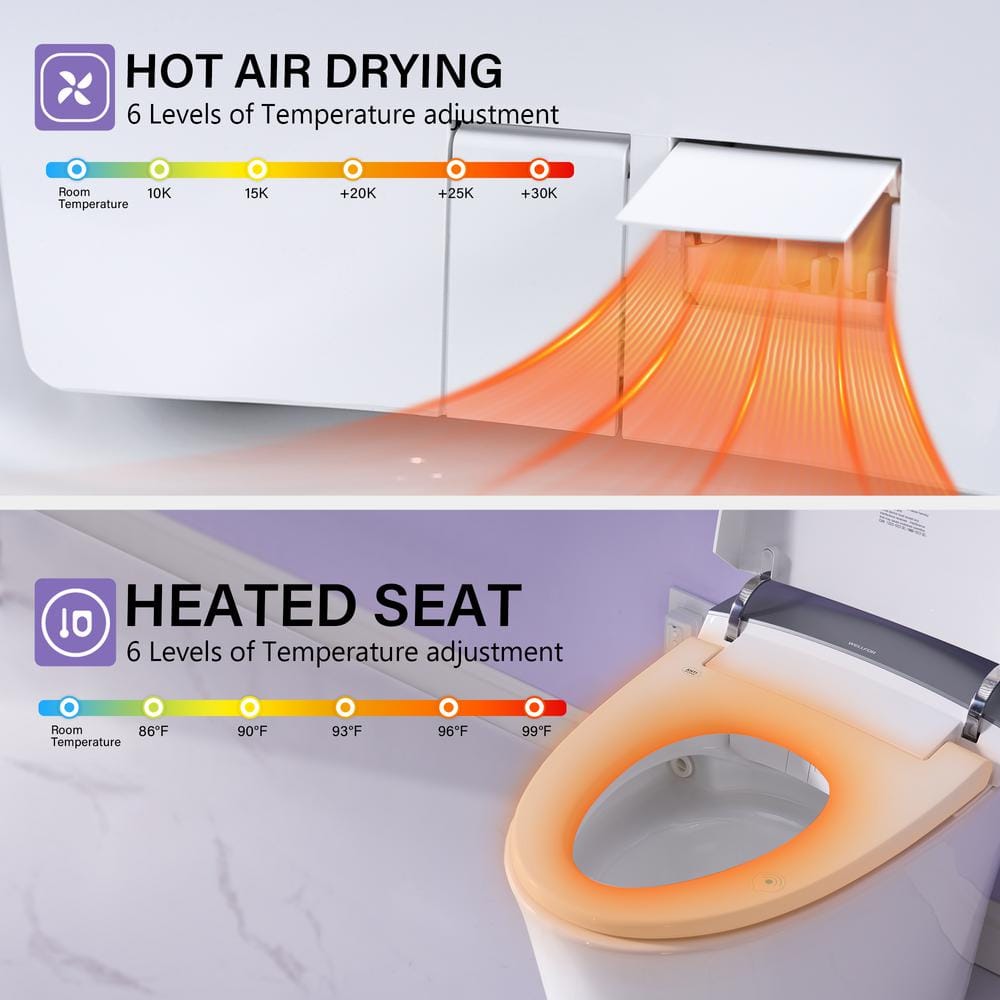 Instant Heating: Provides warm water and heated seat with adjustable temperature settings for personalized comfort.