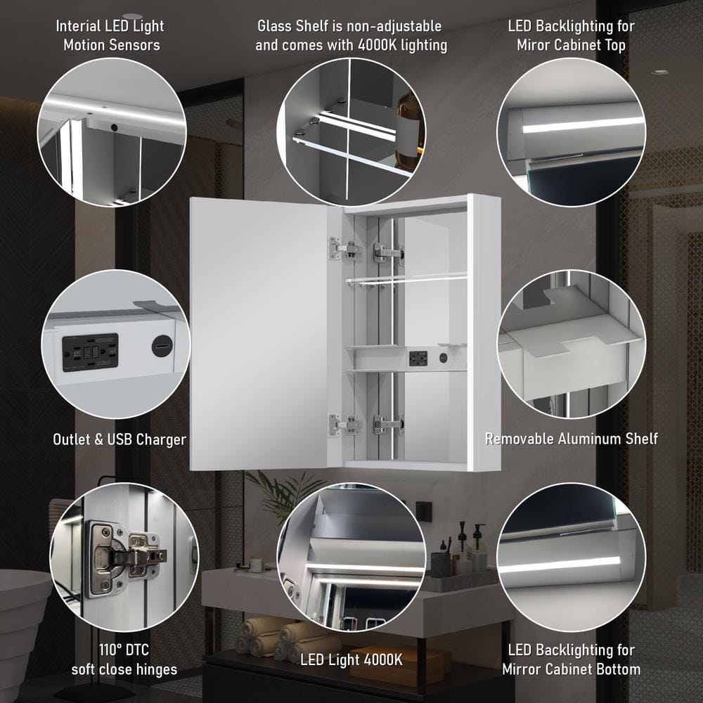 Elevate your bathroom's aesthetic and functionality with the WELLFOR Chic Medicine Cabinet, featuring customizable LED lighting and anti-fog technology. This elegant wall-mounted unit offers a luxurious grooming experience with its motion sensor lights and integrated USB outlets for ultimate convenience. Crafted from anodized aluminum, it's designed to withstand the test of time while providing a sleek, modern look.