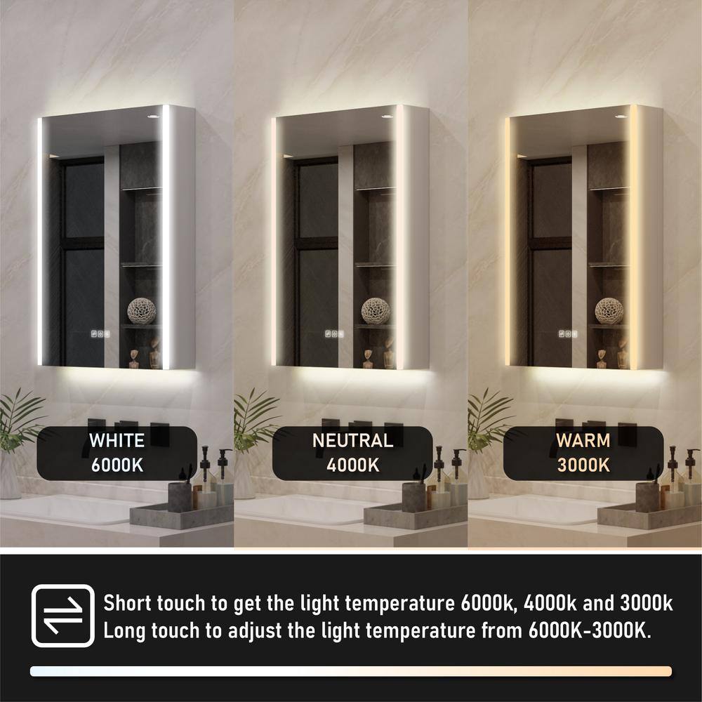 A: Yes, the cabinet features 3-color temperature settings and is dimmable from 10% to 100% for personalized ambiance.