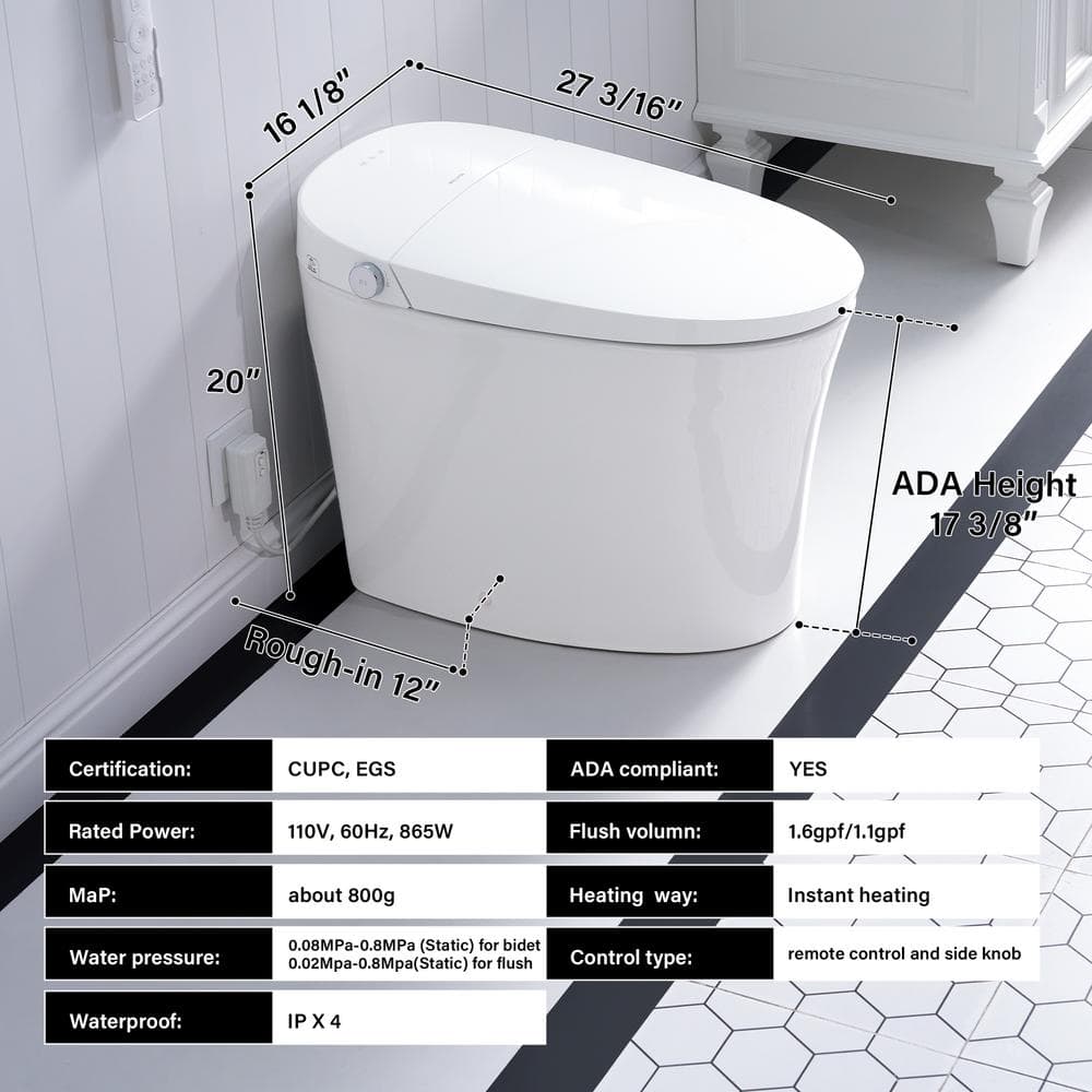 Remote and Sensor Controls: Operate seamlessly with a remote control or foot sensor for lid and flush functions.