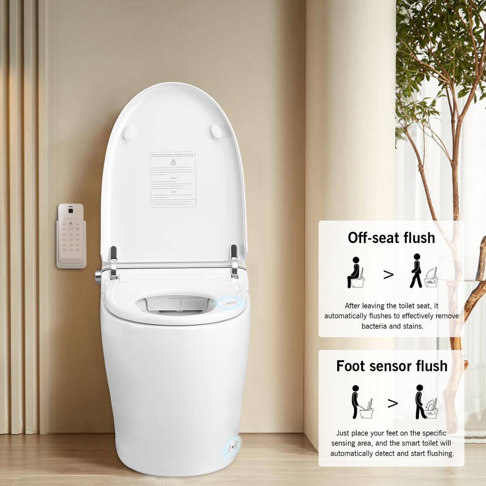 • Versatile Flushing: Four flush options including off-seat, foot sensor, remote control, and side knob for personalized convenience.